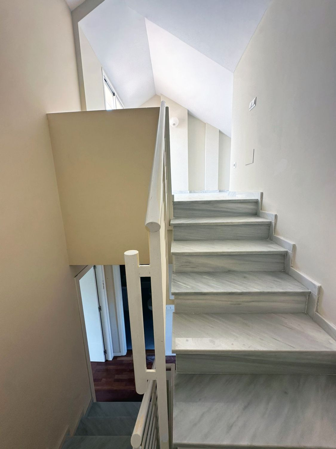 The upper floor comprises three bedrooms (one with a dressing room) and two full bathrooms, providing a cozy and well-distributed relaxation area for the whole family. Finally, the tower floor (12 m²) houses the staircase leading to the rooftop terrace, providing additional space with multiple uses.