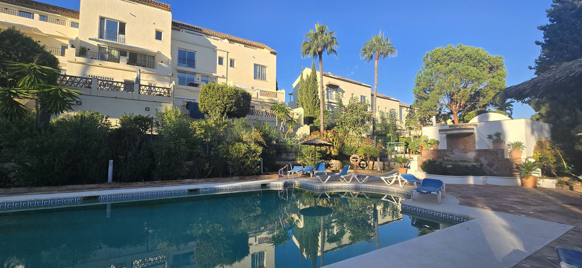 Spacious triplex apartment for sale with partial sea views, ideally located in the heart of Nueva Andalucía. Set just steps from the prestigious Aloha Golf Club and within walking distance of renowned schools, this fully gated community offers excellent privacy along with two large communal swimming pools, creating a tranquil and secure environment.