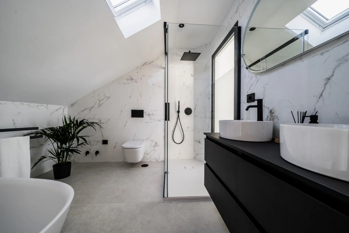 The property spans across four terraces, offering diverse views. The master bedroom on the top floor has a lovely fully equipped walk-in closet and an upper terrace with panoramic sea views. Recently renovated to suit a modern lifestyle, the townhouse boasts double-glazed windows, an electric awning, and shutters.