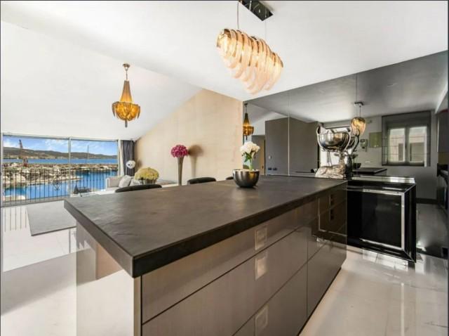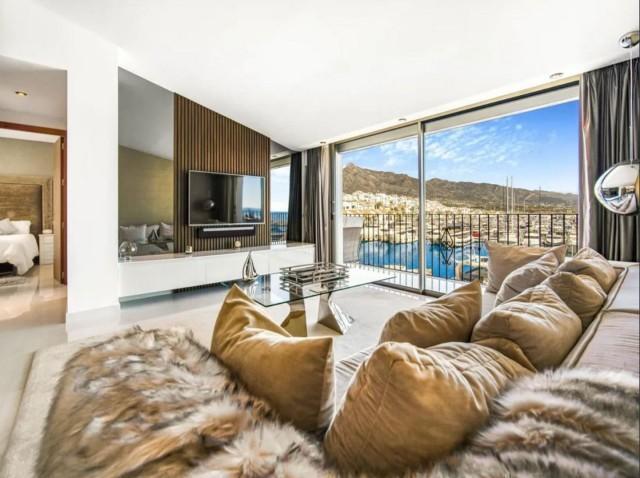 This immaculate 2-bedroom, 1-bathroom penthouse, fully renovated to the highest standards, is located on the frontline of the Puerto Banús marina, offering an unrivalled coastal lifestyle. With 82 m² of carefully designed interior space, the property boasts spectacular views of the sea, mountains, and the vibrant harbour. The interior features a modern open-plan layout with a fully fitted kitchen and large island, air conditioning, fitted wardrobes, and double glazing in both the bedrooms and the living room for enhanced comfort and efficiency.