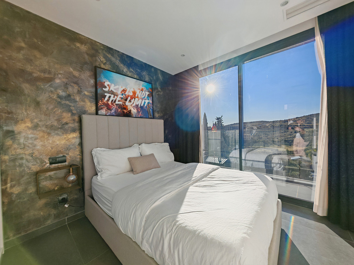 Villa for sale in Valle Romano, Estepona with 4 bedrooms, 3 bathrooms, 1 on suite bathroom, 1 toilet and with orientation west, with private swimming pool, private garage (1 parking spaces) and private garden. Regarding property dimensions, it has 316 m² built and 495 m² plot. Has the following facilities amenities near, transport near, air conditioning, partly furnished, fully fitted kitchen, basement, guest room, alarm, brand new, barbecue, guest toilet, kitchen equipped, living room, country view, mountain view, golf view, heated pool, automatic irrigation system, smart home system, laundry room, internet - wi-fi, covered terrace, fitted wardrobes, garden view, pool view, underfloor heating (bathrooms), close to sea / beach, close to golf, uncovered terrace, glass doors, open plan kitchen, close to shops, close to town, close to port, close to schools and surveillance cameras.
