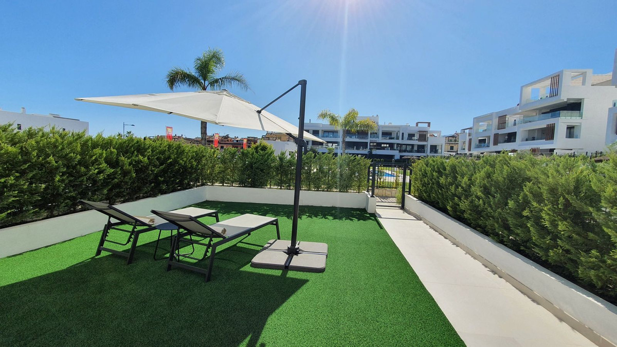 This stunning ground-floor apartment in Los Miradores del Sol Phase I perfectly combines contemporary luxury with Mediterranean indoor-outdoor living on Estepona’s exclusive New Golden Mile. Offering 92 m² of elegant interior space and an impressive 84 m² of private terraces and gardens, it’s ideally located just a short walk from the beach, shops, and restaurants.