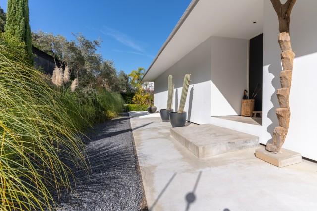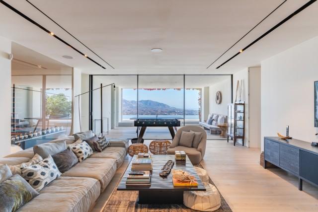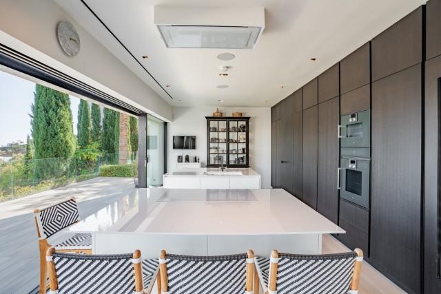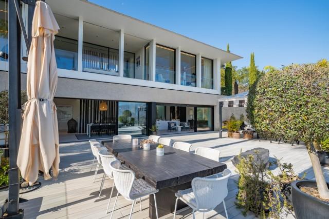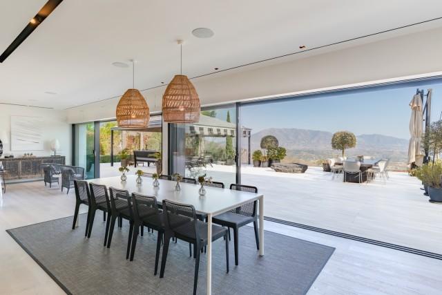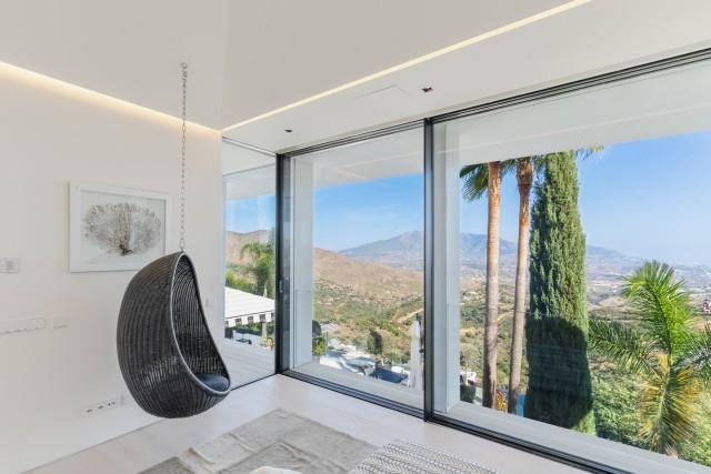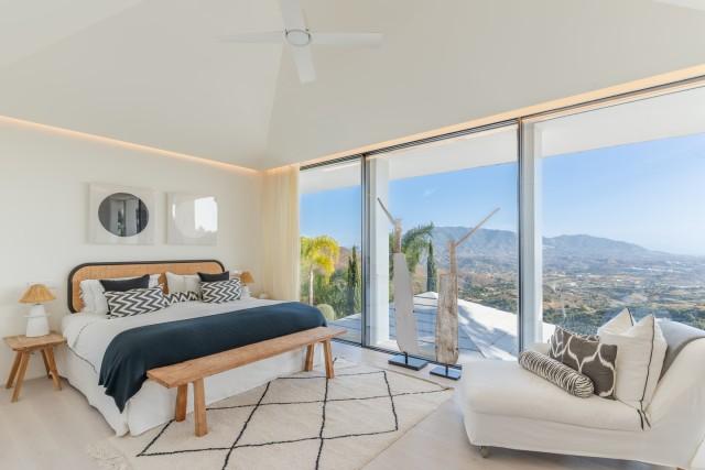 This exceptional residence in La Mairena stands out for its unique design, created to maximize views of the sea, mountains, and the surrounding natural environment. Distributed over three levels, the home offers a constant connection with the outdoors thanks to large floor-to-ceiling windows and an architecture that prioritizes light and spaciousness. The entrance level houses a spacious living room and several bedrooms facing the Mediterranean landscape. The middle level constitutes the main living area, with an open-plan kitchen and pantry that flows into the dining and living areas, all with access to a large terrace ideal for al fresco dining.