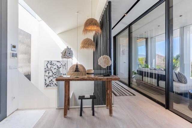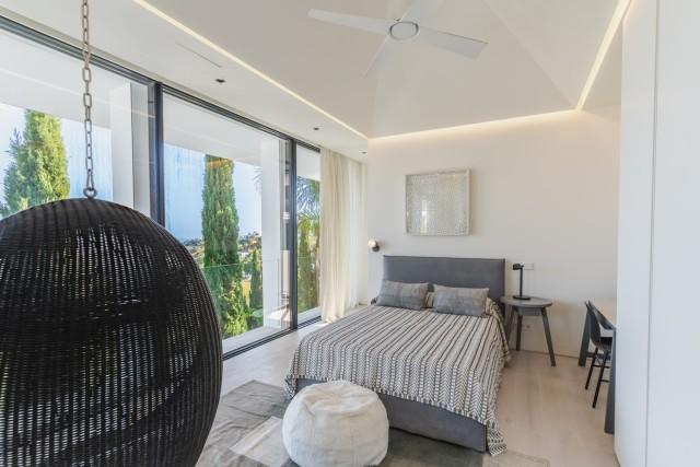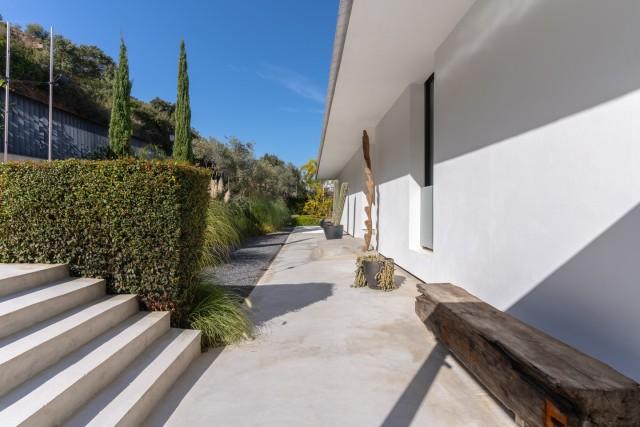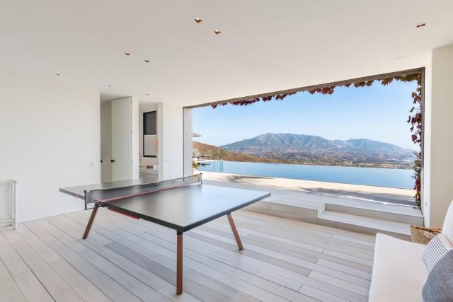 The lower level adds versatility with three additional bedrooms, a TV room, a fully equipped gym, a sauna, and a covered terrace used as a playroom. From here, there is direct access to the swimming pool, strategically located to enjoy the coastal views. With underfloor heating, electric blinds, and five en-suite bedrooms, this property offers comfort, privacy, and a lifestyle immersed in nature, just minutes from Elviria and Marbella.