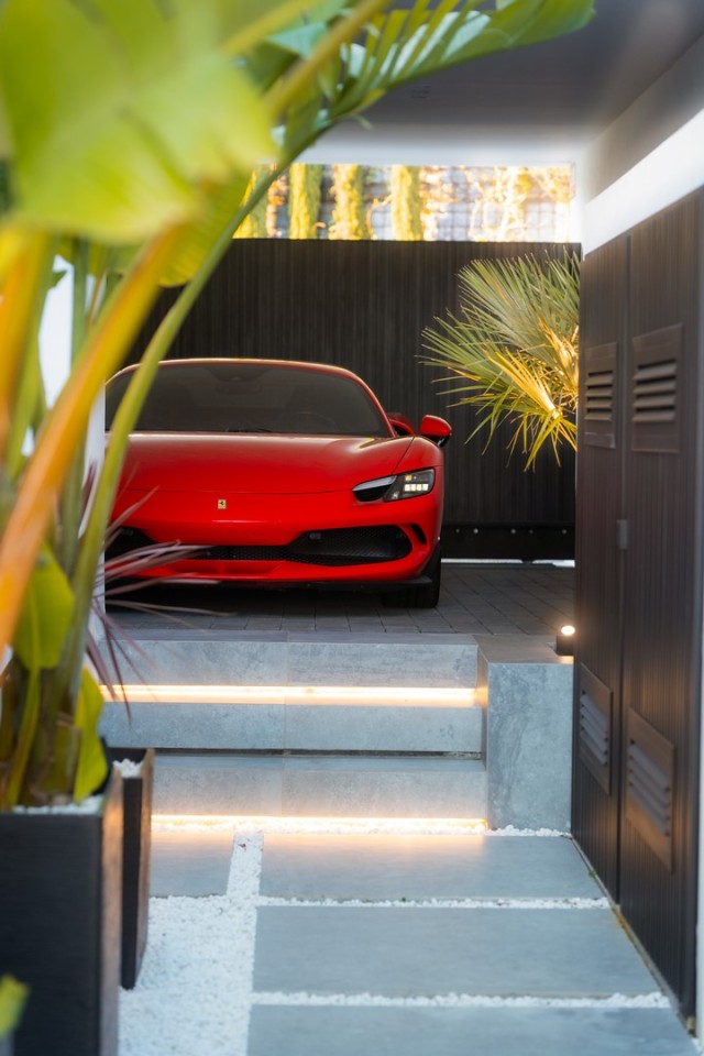 The kitchen features high-quality Gaggenau appliances and elegant Danespan cabinetry, combining modern design with everyday functionality. An adjacent office offers a quiet space for working or studying. A highlight of the villa is the poolside outdoor cinema, an exceptional space to relax under the stars and add a touch of luxury to your evenings outdoors.