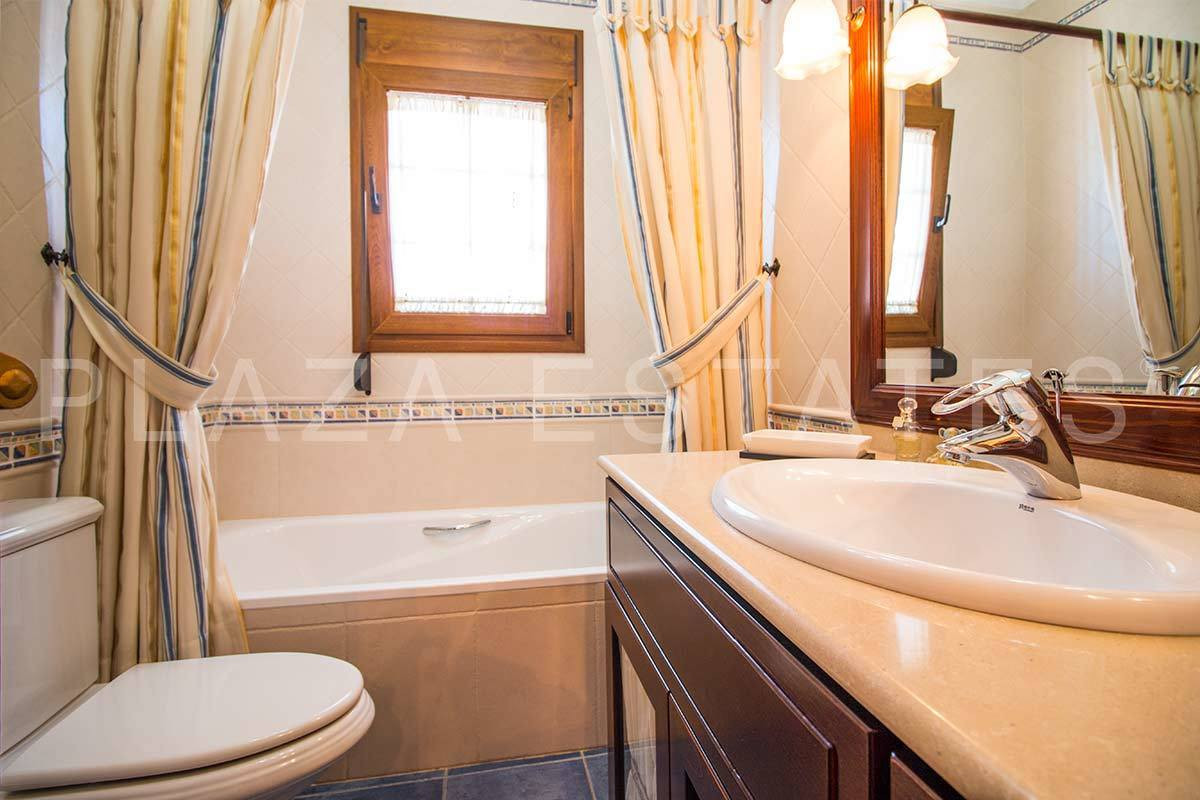 Great house with 4 bedrooms and 3 bathrooms, located in the quiet urbanization of La Noria with a communal pool and a tennis court, 5 minutes drive from the center of Nerja, and views to the sea. The house is built with high quality materials and distributed over three floors. On the entrance level you will find the living room, a small lounge, a separate kitchen and a large covered terrace with outdoor kitchen. Upstairs there are 2 bedrooms and 2 bathrooms and a balcony with sea views. On the lower level there is a large garage and a separate apartment with one bedroom, one bathroom and a living room with an open fireplace. The private covered pool is accessed from the big terrace outside the living room.