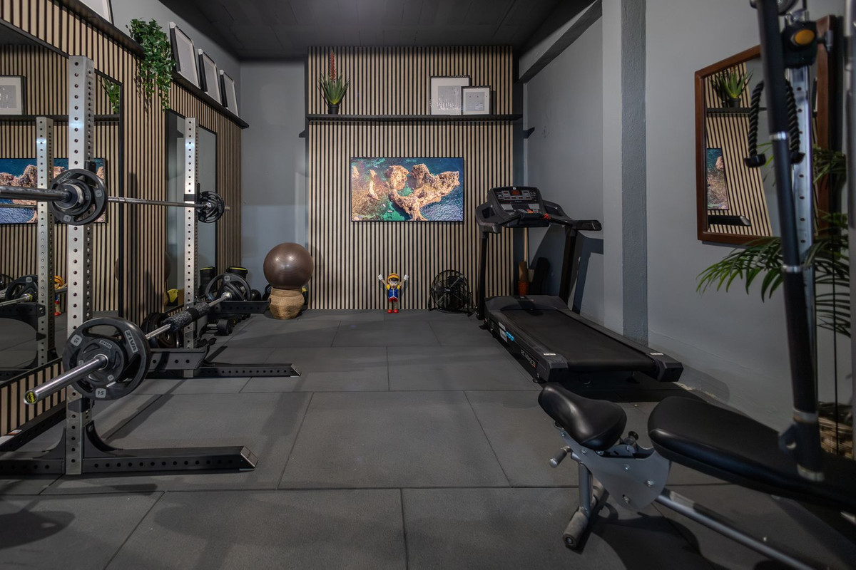 Elegant View Residence in La Cerquilla, Nueva Andalucía Located in the prestigious and secure gated community of Aldea Dorada, this semi-detached residence offers the ease of a townhouse with the elevated presence of a penthouse, set in one of Nueva Andalucía’s most exclusive and tranquil locations. From its privileged position, the property enjoys exceptional panoramic views across the Mediterranean Sea, the Golf Valley, and the iconic La Concha Mountain—widely considered among the finest views in Nueva Andalucía and the defining feature of the home. Behind a classic Andalusian façade, the interior reveals a warm and refined Japandi-style renovation, featuring high ceilings, open-plan living spaces, and modern bathrooms that create a calm and elegant atmosphere. The entrance level offers an open living and dining area with a striking suspended fireplace, a discreet office space, and direct access to a partly covered terrace designed to fully embrace the views. The home offers 300 m² built, 76 m² of terraces, and a 300 m² private garden with avocado, mango, and passion fruit trees. A plunge pool on the upper terrace delivers a true penthouse-style outdoor experience. The property comprises four bedrooms and three bathrooms, with excellent potential to create a luxurious master suite with walk-in wardrobe and en-suite bathroom. Additional features include a private gym, two large storage rooms, covered parking for two cars, and lower-level terraces with direct access to the garden. A rare opportunity for buyers seeking a secure, semi-detached luxury home with breathtaking views and effortless maintenance.