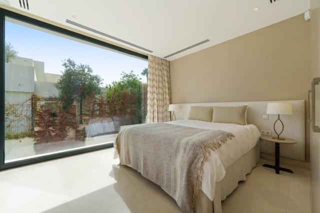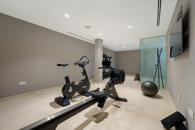 The exterior spaces are equally impressive. Landscaped gardens surround an infinity-edge swimming pool with a sunken chill-out lounge, outdoor kitchen, and multiple seating areas designed for year-round enjoyment of Marbella’s climate. The villa also benefits from a private garage with parking for several vehicles and a privileged position close to world-class golf, beaches, fine dining, and the vibrant lifestyle of Puerto Banús.