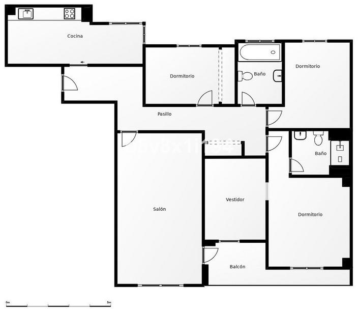 Originally distributed as a four-bedroom apartment, one of the bedrooms has been converted into a spacious dressing room, although it could easily be converted back into a fourth bedroom. It comprises three bedrooms, two bathrooms (one en suite in the master bedroom and its dressing room), a bright living room with access to a terrace, and a comfortable and functional independent kitchen.