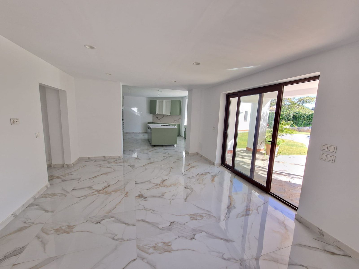 Detached villa in Sotogrande. Completely renovated villa with 4 bedrooms, 4 bathrooms, a guest toilet, a spacious living room with fireplace, a large sitting room, and a large eat-in kitchen. Enclosed garage, large garden, swimming pool, and tennis court. 682m² built on a 2,400m² plot.