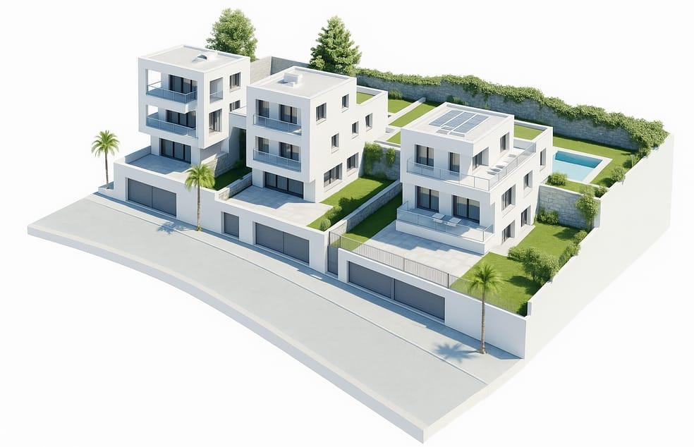 Stunning modern villa offering breathtaking sea, mountain, and urban views. Features include a private lift, garage, versatile lower level for gym, cinema, or extra bedrooms, three en-suite bedrooms with terraces, open-plan living and dining with integrated kitchen, guest toilet, covered porch, private pool, jacuzzi, and rooftop solarium.