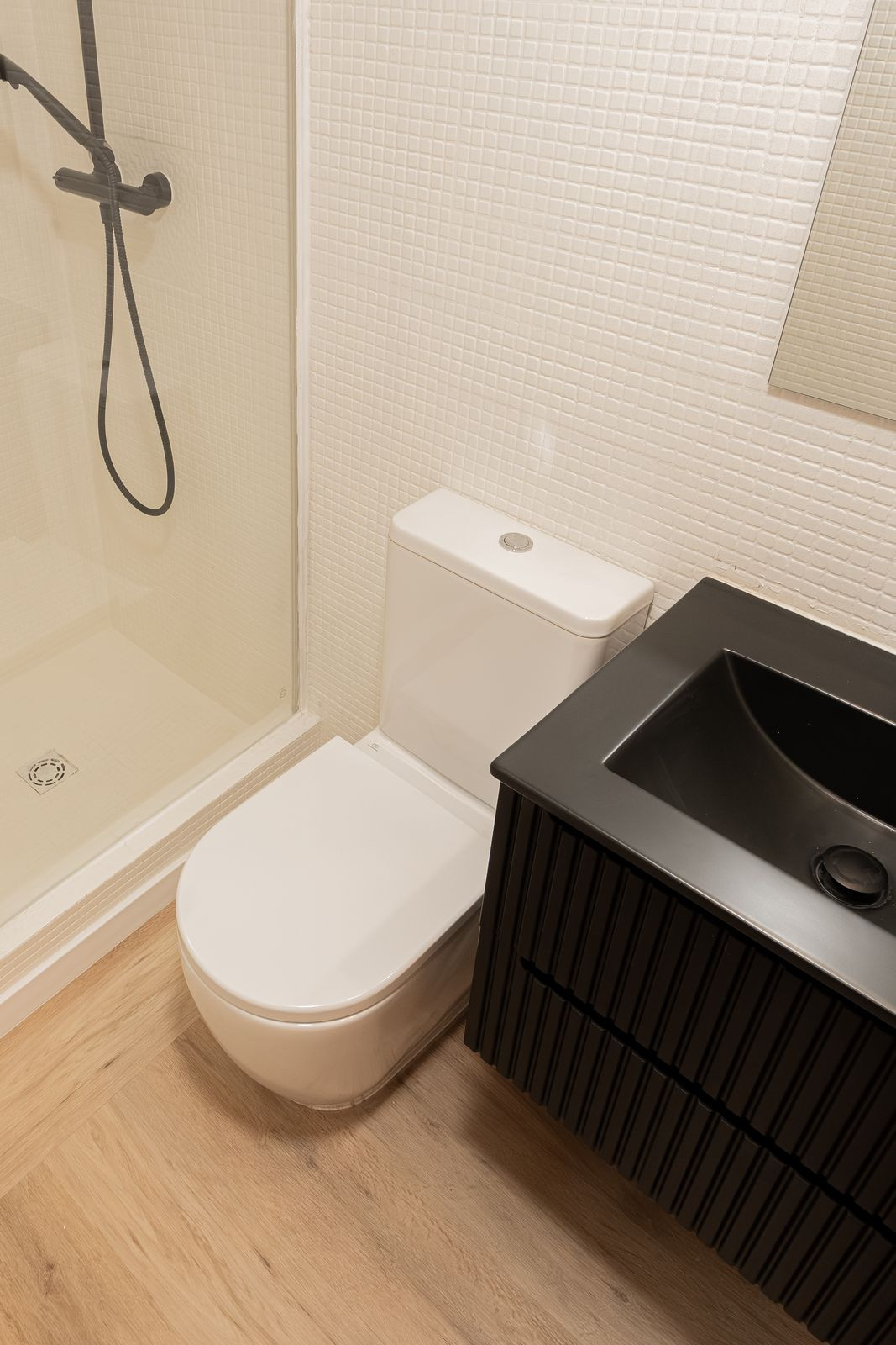 Located in a fully renovated 1880's building, the apartment has a built area of 44 m². Originally featuring one bedroom, it has now been converted into a loft-style layout with an integrated kitchen and living area, offering plenty of natural light through its large window.
