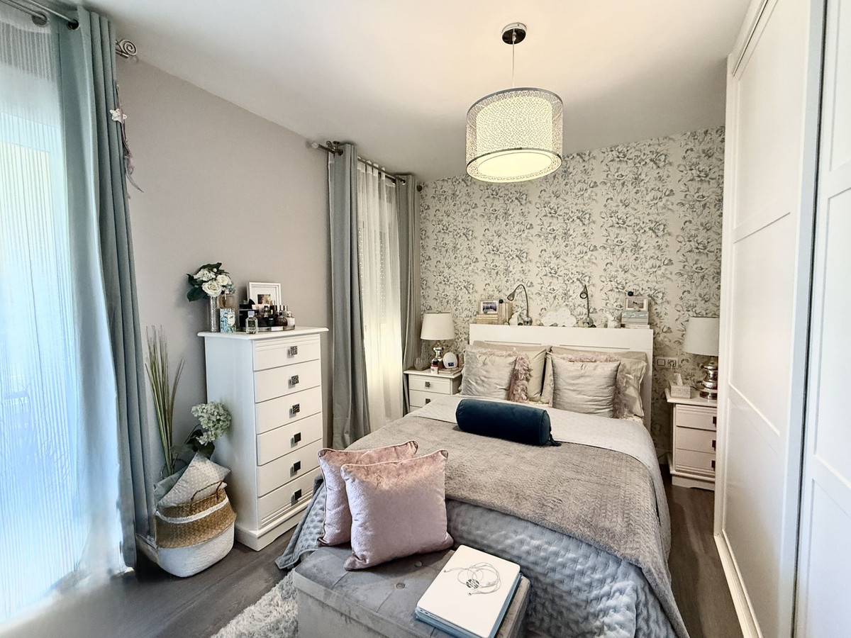 Truly beautifully refurbished apartment, with large terrace and fabulous sea views! Located within the heart of lower Riviera del Sol, just a short walk to local shops, bars and restaurants and only a 10 minute walk to the beach and public transport, this first class property needs to be seen to appreciate its quality and charm. The apartment comprises of a hallway, lounge/dining room with patio door access to a large south¨-east facing balcony overlooking the lovely gardens and pool area then out to sea. There are 2 double bedrooms with fitted wardrobes and a bathroom plus of course a modern fully fitted kitchen. In addition the property has a storeroom accessed via stairs or lift. The communal areas of the building are immaculately kept as are the gardens, which comprise of lawns, subtropical trees and plants and, of course, the fabulous swimming pool and separate pool for small children. The apartment has hot and cold air-conditioning throughout and the furniture is optional. For security, the community has 24 hour CCTV cameras. Perfect for holidays or all year round living. Also very reasonable community fees at just 83 euros per month.