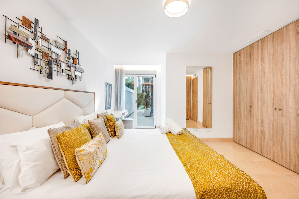 This exclusive, spacious 3-bedroom, 2-bathroom ground-floor apartment is located in a new development within walking distance of the vibrant Puerto Banús. Situated in a gated and secure community, the property offers access to a communal swimming pool and well-maintained common areas.