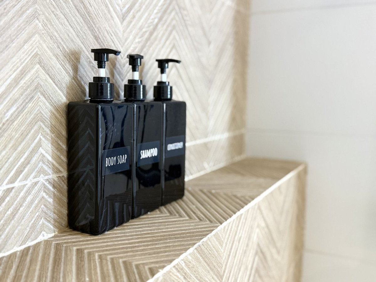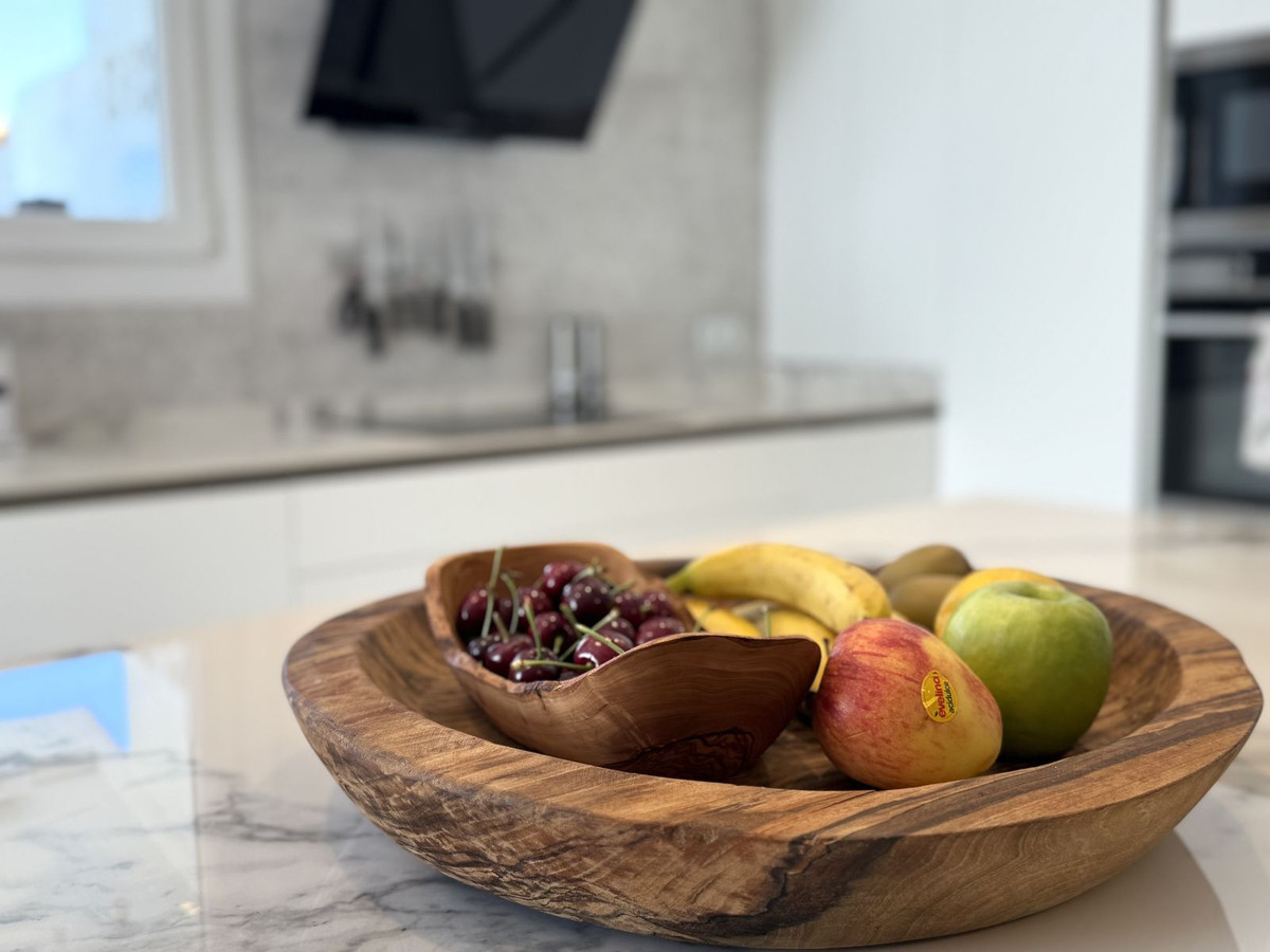The 98 m² terrace, located on the same level as the apartment, extends the living space outdoors. It includes a fully equipped outdoor kitchen with barbecue, sink, and fridge, a dining area for six, a bar section, outdoor shower, and even a private gym. Part of the terrace is enclosed in glass and currently used as a home office with AC – which can also serve perfectly as an extra guest room.