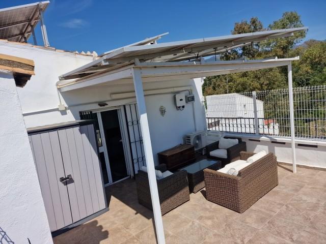 Semi-detached townhouse for sale near Estepona. The first floor consists of a spacious living room, an independent dining room in an enclosed terrace, the master bedroom, a bathroom and a fully fitted kitchen. The top floor consists of a bedroom, a bathroom and a sunny terrace. Perfect for outdoor dining, reading or entertaining.