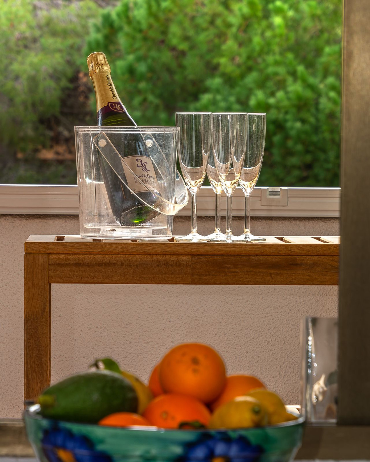 Second Bedroom: Two single beds and view to the side terrace.