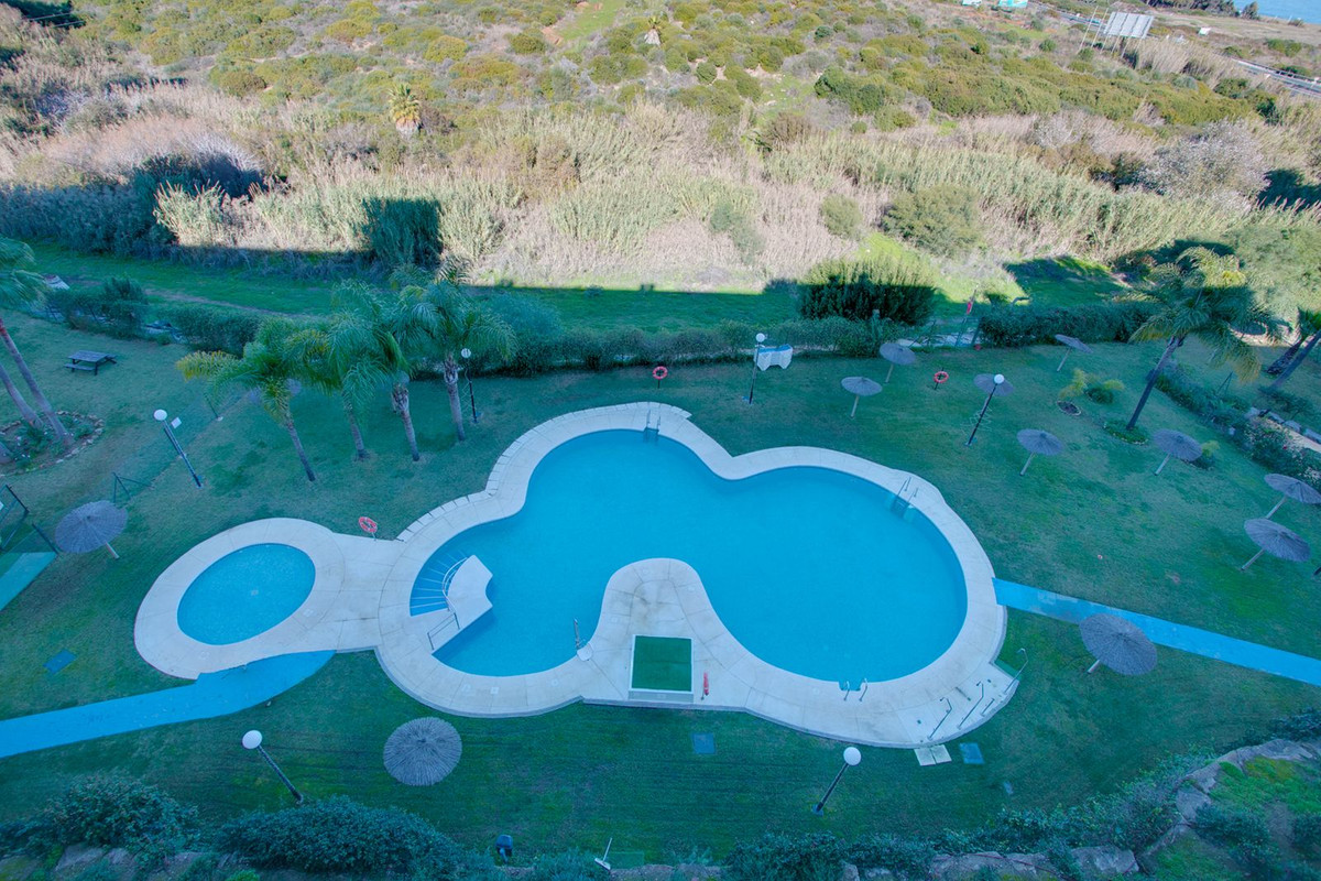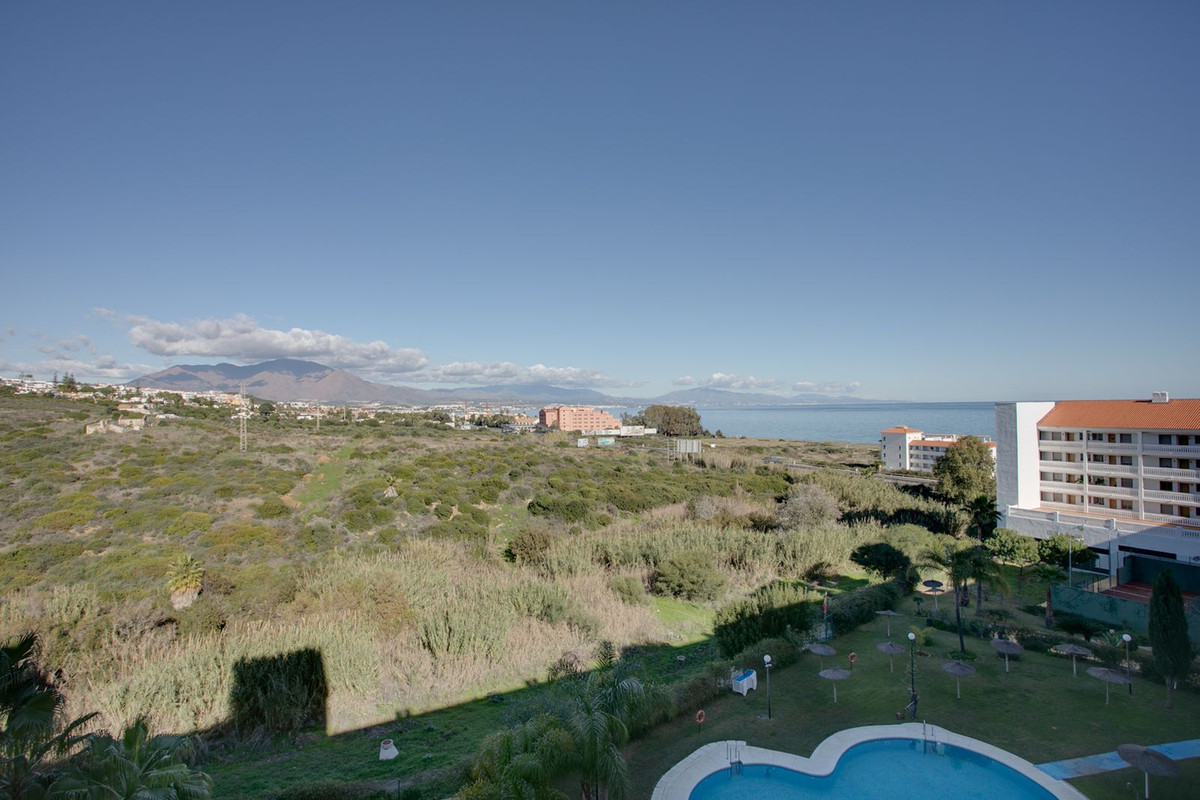 The apartment features 128 m² built, an 11 m² covered terrace, and a 21 m² solarium with stunning views of the Mediterranean Sea and the Rock of Gibraltar. On the lower level are two bedrooms with fitted wardrobes, a renovated bathroom, a guest toilet, and a brand-new fully equipped kitchen that opens onto a bright living area with direct access to the terrace. Upstairs is the third bedroom with en-suite bathroom and direct access to the solarium.