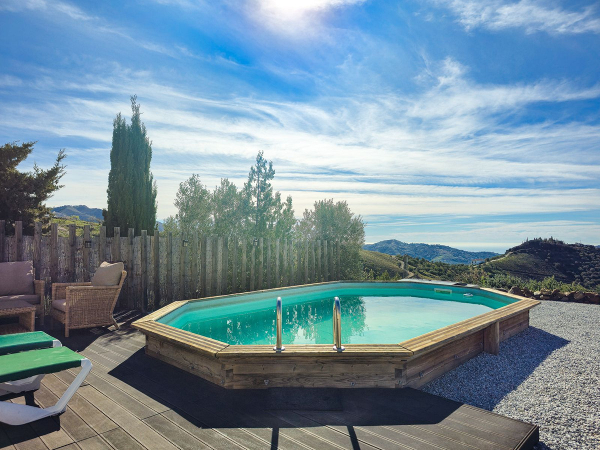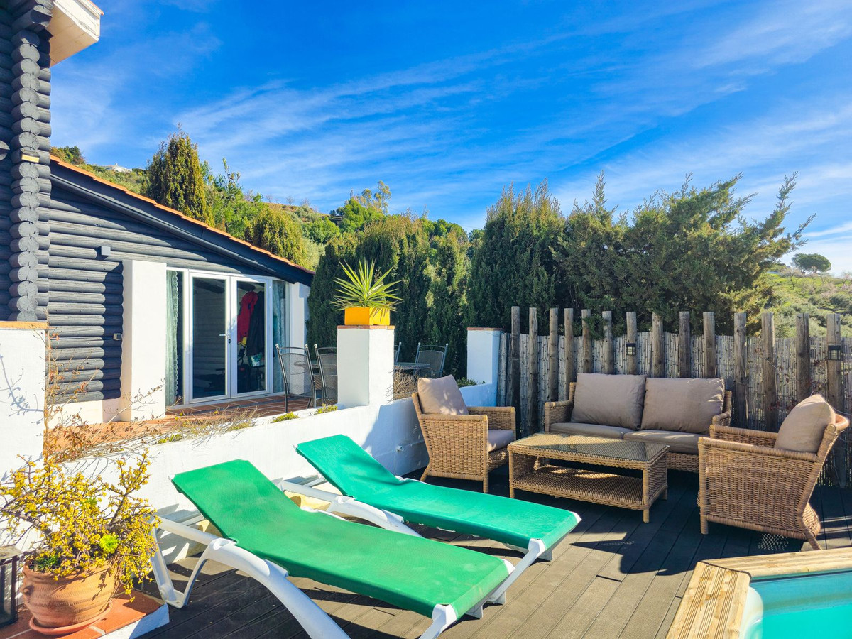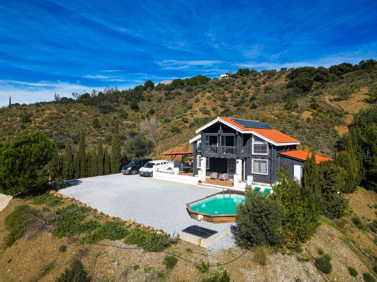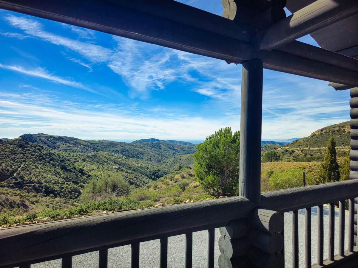 This charming south-facing wooden chalet is set on a generous 2,555 m² plot in a superb and tranquil location, offering beautiful views of the mountains and the sea. It is ideally situated just 5 minutes by car from Canillas de Albaida and Árchez, and only 10 minutes from Cómpeta. The property has excellent access with no rough or dirt tracks.
