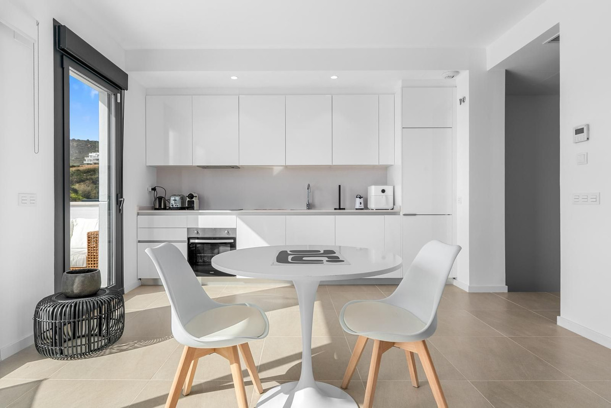Magnificent apartment , located within the highly sought-after development of Bahía de las Rocas – Manilva. The property offers two bedrooms and two bathrooms, combining comfort, elegance, and functionality. From the moment you enter, a welcoming entrance hall leads to a spacious, light-filled living area featuring an open-plan kitchen, dining area, and a comfortable lounge. This space opens onto a large terrace, a true extension of the interior, offering spectacular views of the sea, Gibraltar, the coast of Morocco, and the surrounding hills. Thanks to its ideal south to south-west orientation, the apartment enjoys optimal sunlight throughout the day. The property can be accessed directly from the underground parking, with a private entrance leading straight into the apartment. A laundry room completes this property. The apartment is sold fully furnished. The project, completed in summer 2025, is a contemporary residential complex consisting of 46 apartments, designed to offer exceptional panoramic views of the Mediterranean, just a few meters from the beach. The complex stands out for its high-quality materials, generous living spaces, and exclusive amenities, including an infinity pool, gym, and spa. Ideally located close to golf courses and marinas, it is just 15 minutes from Gibraltar Airport and a short distance from Estepona, La Duquesa Marina, and the prestigious Sotogrande Marina. Puerto Banús and Marbella are less than 30 minutes away. An exceptional property, ideal as a primary or secondary residence or as a high-quality investment, set in a natural and exclusive environment, perfect for enjoying the Costa del Sol climate and the Mediterranean Sea. A must-see!