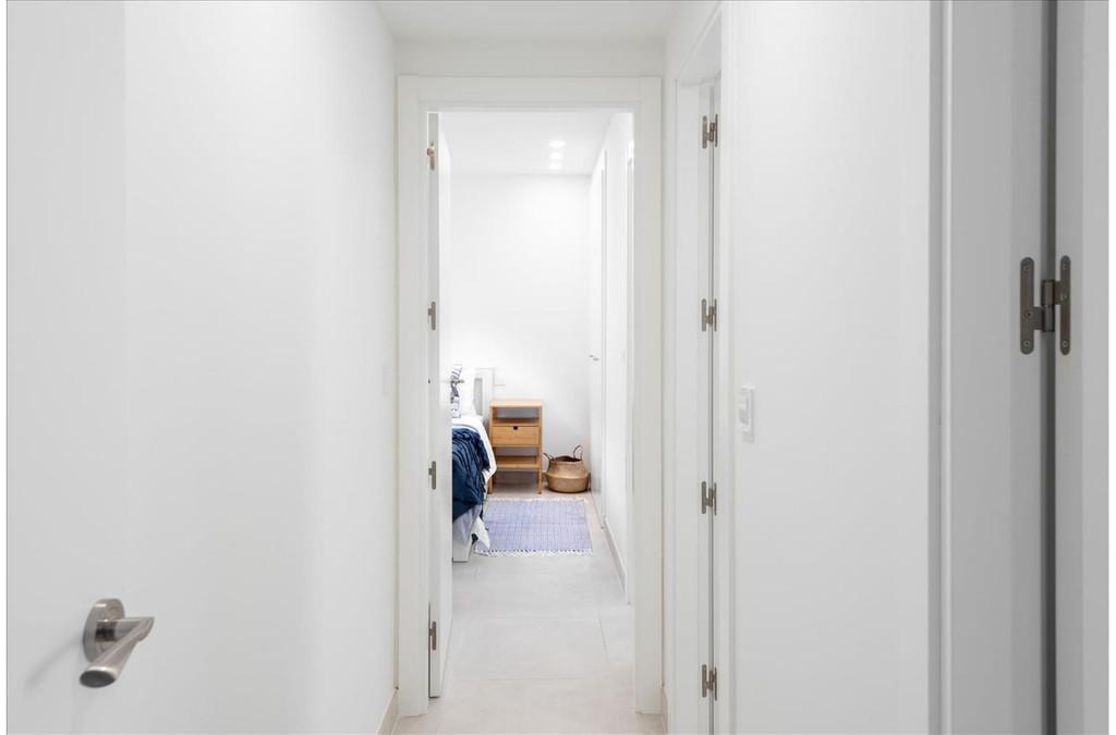 The layout comprises an entrance hall, fully fitted kitchen, bright living–dining area, two bedrooms, two bathrooms, a separate utility/laundry area, and direct access to the terrace. The apartment enjoys a practical and comfortable distribution, ideal for both residential living and rental use.