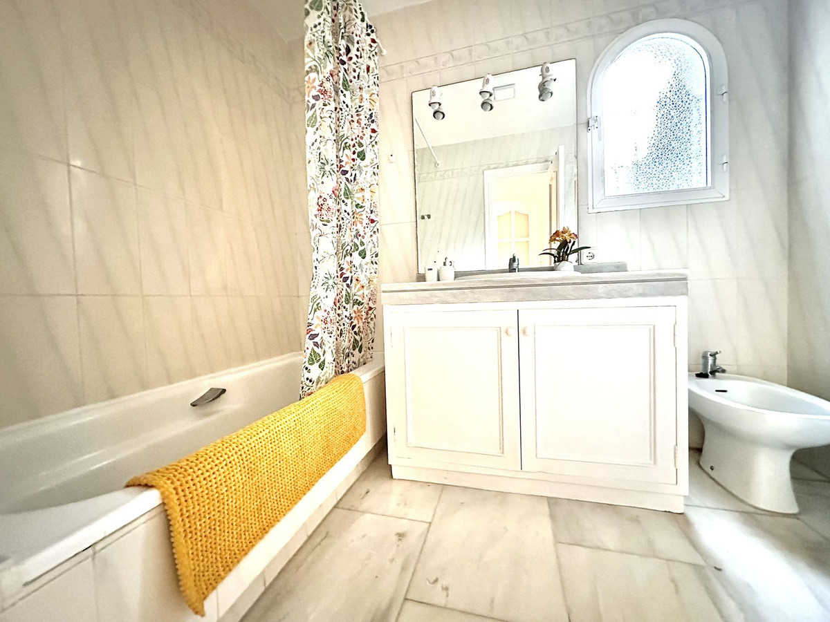 The ground floor houses the sleeping area, consisting of three bedrooms and two bathrooms, one of them en-suite in the master bedroom. Both the master bedroom and one of the secondary bedrooms have direct access to a private garden of approximately 50 m², an intimate and pleasant space that connects directly to the community pool, ideal for enjoying the climate and outdoor living.