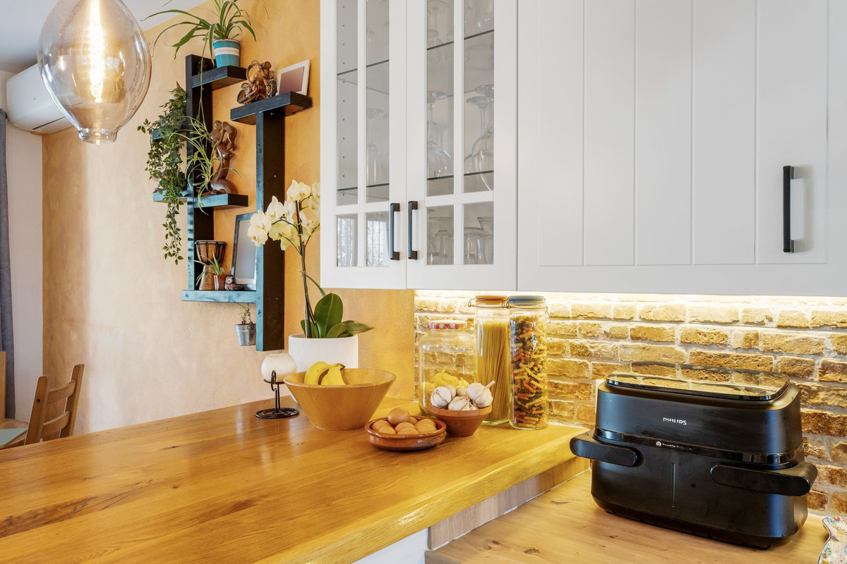 Upon entering, you find yourself in a spacious living room with a fireplace and a beautiful open-plan kitchen. The living room opens onto a sunny private garden with a barbecue, perfect for relaxing all year round.