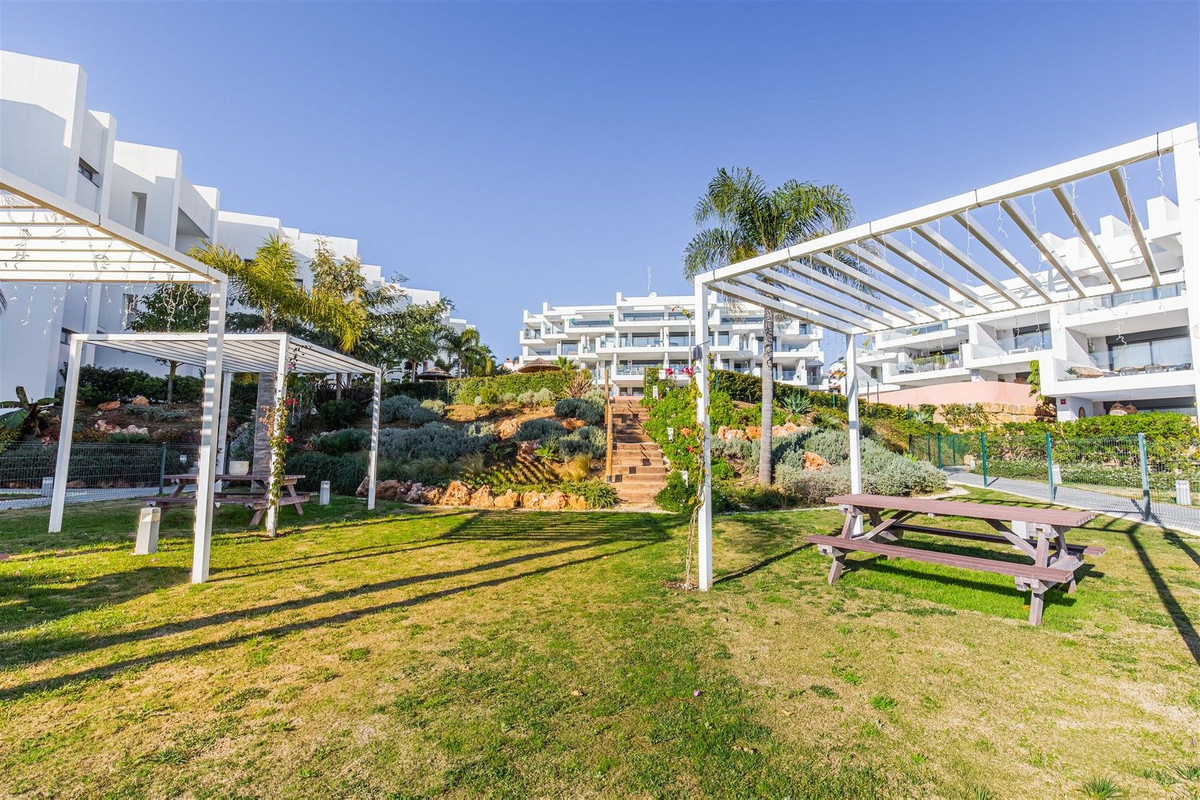 Communal facilities include saltwater pools for adults and children, landscaped gardens, picnic areas, playgrounds, chill-out spaces, a fitness area, yoga and relaxation zones, solarium, leisure room, and secure access—perfect for a balanced Mediterranean lifestyle.