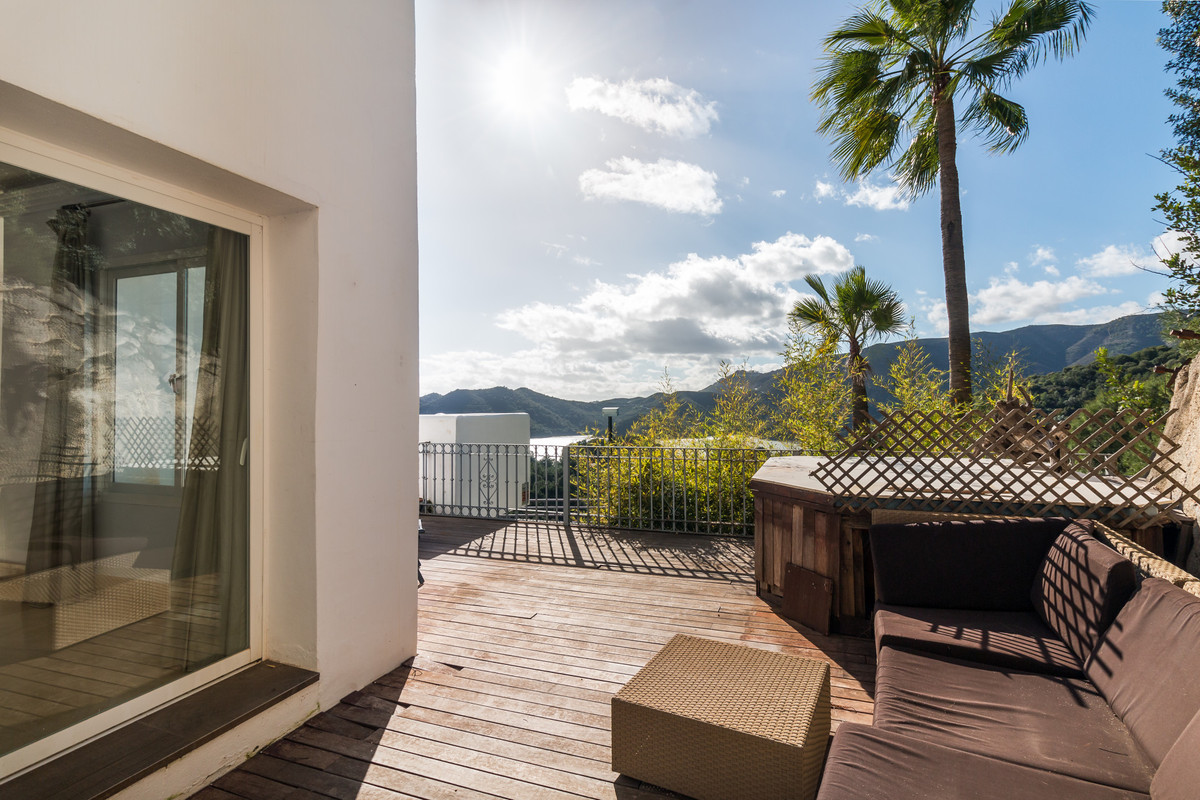 Superb townhouse located in the stunning lakeside development of Zahara de Istan, only a few minutes drive from the famous Marbella Golden Mile. The property features fantastic views to the Istan lake with many special features. On the ground floor we find a spacious living and dining area with an open plan kitchen, guest WC a frontal terrace with uninterrupted lake views and large enclosed back patio area currently used as a dining area. Upstairs we find 3 spacious bedrooms, two of them sharing a family bathroom and the master bedroom en-suite. Two of the bedrooms offer spectacular lake and country views, and the third bedroom leads out onto a back terrace. Additionally there is a large basement, with a garage and lots of storage space. Ideal full time living or holiday home!