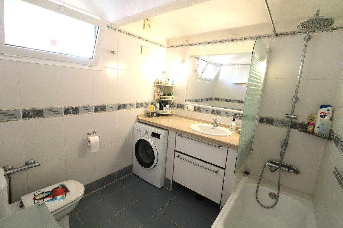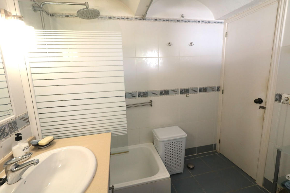 On the upper level the property offers a bright, open living area with high ceilings, a dining area and a fully kitchen, Then up another small flight of stairs to the main living room and access to the large terrace, one part with a roof to enjoy a sundowner or just the mediterian clima..