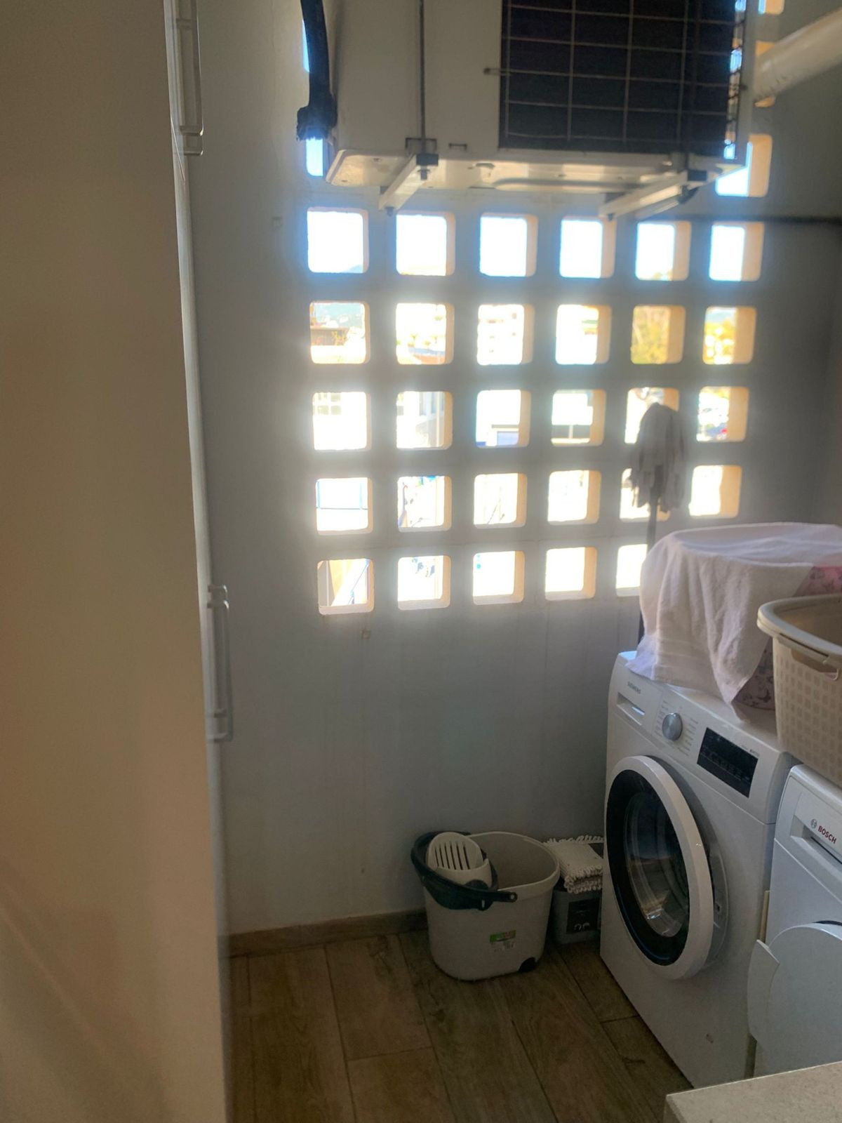 A beautifully renovated modern and bright kitchen comes fully equipped with all modern appliances with soft closing wall and base storage cupboards and drawer units which are of an Italian design and finished to a high-end quality, complete with contrasting worktop surfaces. Adjacent to the kitchen, a glass door leads onto a very useful utility room which houses the mains gas boiler, air con machine, washing machine, and more storage cupboards with worktop surfaces.