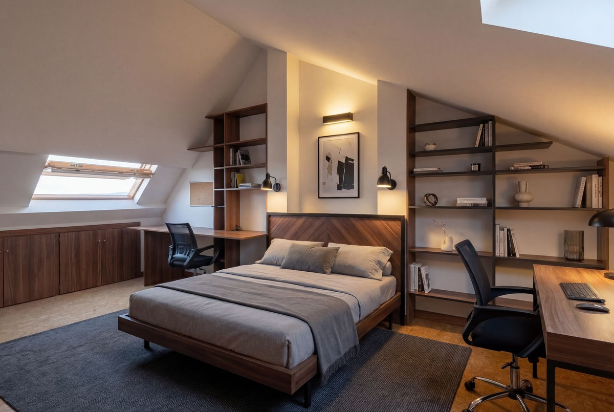 On the upper level there is a large attic-style bedroom with private toilet and exceptional views. On the lower level you will find the spacious master bedroom with en-suite bathroom, two additional bedrooms and another full bathroom, with direct access to the private outdoor area consisting of a cosy 27 m² porch and a 33 m² garden, an ideal space to enjoy the Costa del Sol climate all year round.