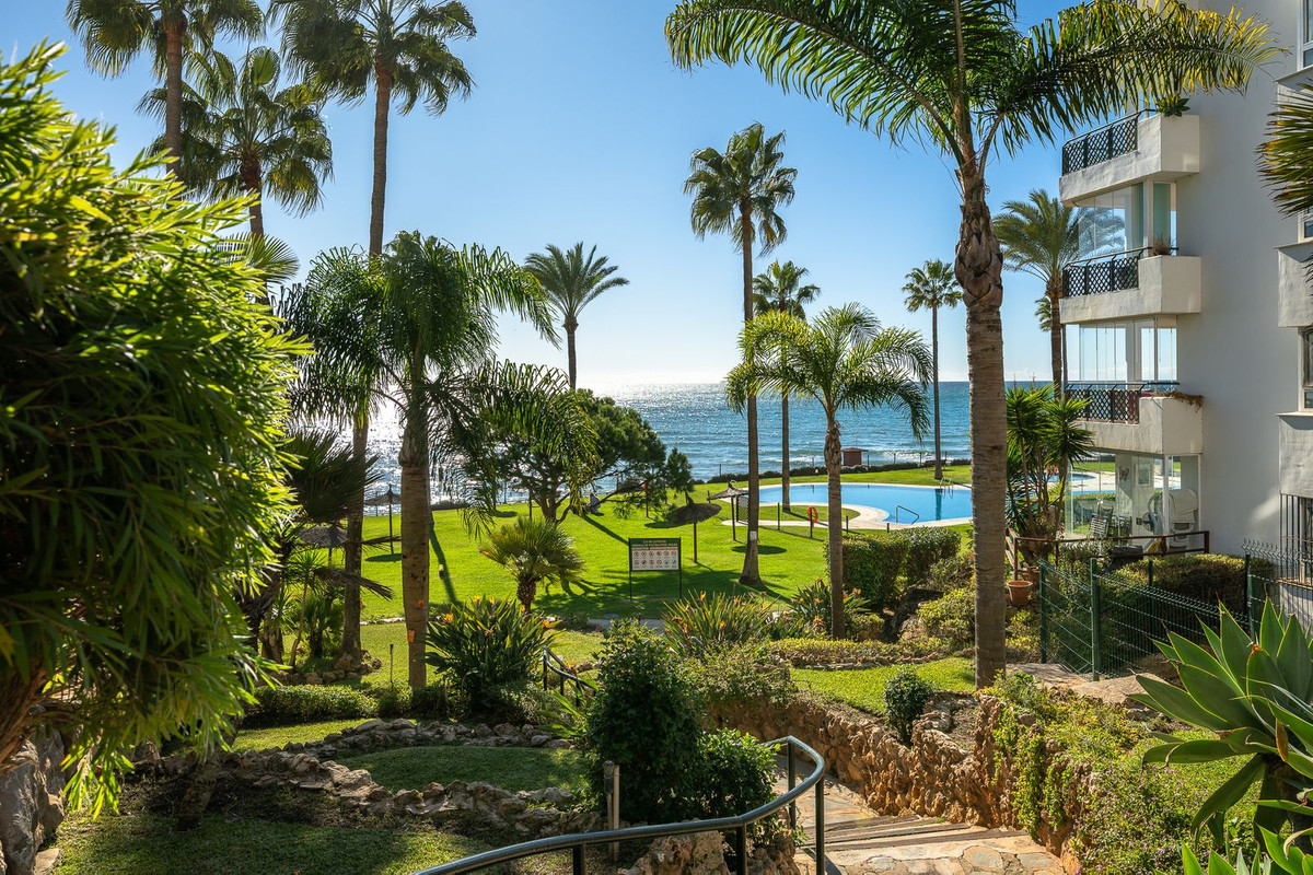 We are delighted to present this beautiful 2-bedroom, 2-bathroom beachfront apartment, ideally located in the prestigious and well-established Mi Capricho urbanisation in Sitio de Calahonda, Mijas Costa. Set within an exclusive gated community with direct access to the promenade and beach, this property offers an exceptional blend of lifestyle, comfort, and investment potential on the Costa del Sol.