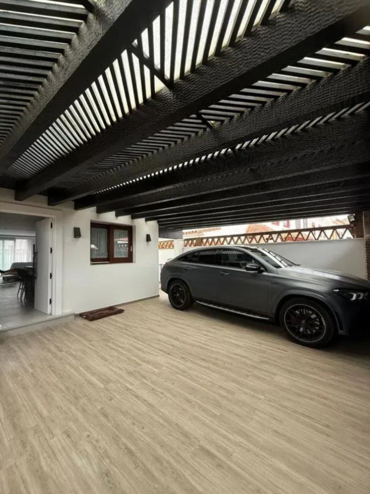 Ground floor open-plan kitchen opening onto the living room, toilet, and large terrace with a 2x3 meter saltwater pool, independent garage.