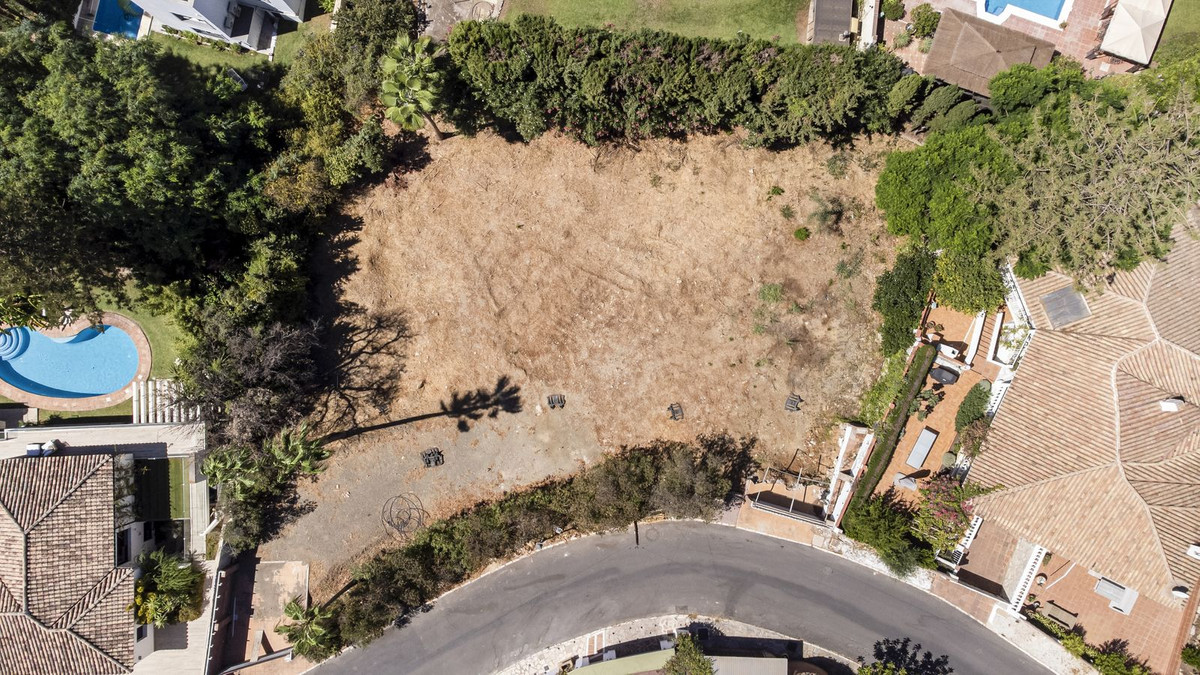 Elevated 1,306 m² plot for sale in the established residential area of El Rosario, Marbella, offering open views towards greenery and the Mediterranean Sea.