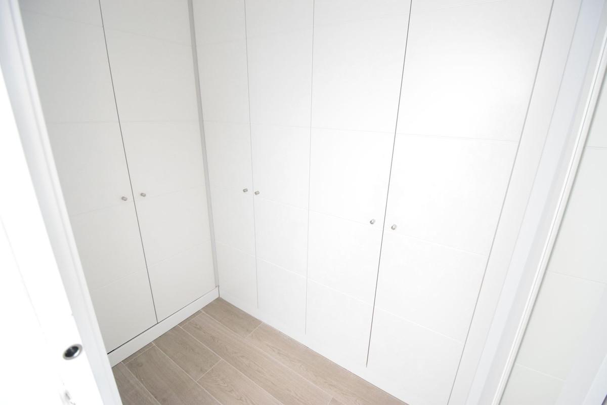 Fantastic, recently built apartment which is perfect for families who want to live in a spacious and comfortable home. It consists of a generous living-dining room, fully fitted open plan kitchen, equipped with Bosch electrical appliances, 3 bedrooms, 2 bathrooms, guest toilet and a utility room. The lounge and kitchen blend together seamlessly and with windows in the kitchen and floor to ceiling patio doors in the lounge this beautiful living space is flooded with natural light and fresh air. The master bedroom has an en-suite bathroom and walk-in closet. Bedrooms 2 and 3 also have built-in wardrobes and they share a shower room. Like the lounge, all bedrooms have direct access to the very spacious 55m2 terrace where you can enjoy stunning sunrises and views of La Noria Golf course and the surrounding area. The terrace from the lounge has glass curtains creating an extra room for use in the winter. In the summer you open the curtains to enjoy the full terrace space, the perfect solution for year round use. Air conditioning hot and cold, video intercom, under floor heating in lounge/dining room, kitchen and all bedrooms which together with the A/C and hot water are powered by an aero-thermal system. A secure underground parking space and private storage room are included in the price and there is a lift and stairs from the garage to all levels. With only two apartments on each floor this property has no neighbours on either sides and is therefore very private. Located in a gated community, with a large circular swimming pool for adults and a separately gated large children's swimming pool with night-time illumination, two paddle-tennis courts, children’s playground and landscaped garden this is a quality residential community perfect for permanent living or amazing family holidays. Within 10 minutes walk of La Cala Beach this is the perfect apartment for family holidays all summer. The owners added many extras to this apartment including, top of the range kitchen worktops, extractor built into the hob, shutters (persianas) added to kitchen and WC windows, glass screen on corner of terrace and sun shade (toldo) above the main seating area of the the terrace.