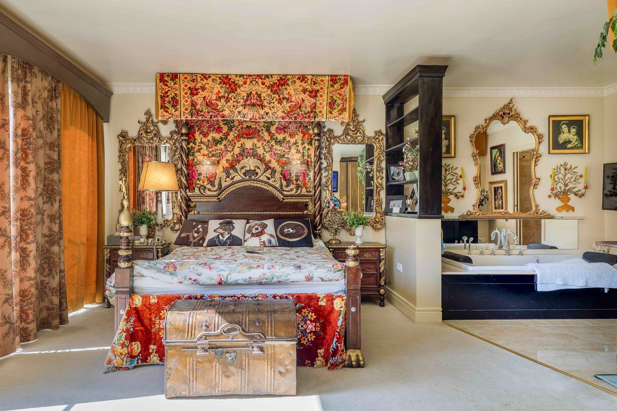 Crowning the residence is the opulent master suite, a sprawling retreat featuring a stately four-poster bed, a sunlit sitting area, and a lavish open-concept bathroom. Here, freestanding tubs and artisanal finishes create a spa-like sanctuary. The additional bedrooms boast ensuite bathrooms adorned with premium details, complemented by a convenient guest powder room nestled between them.