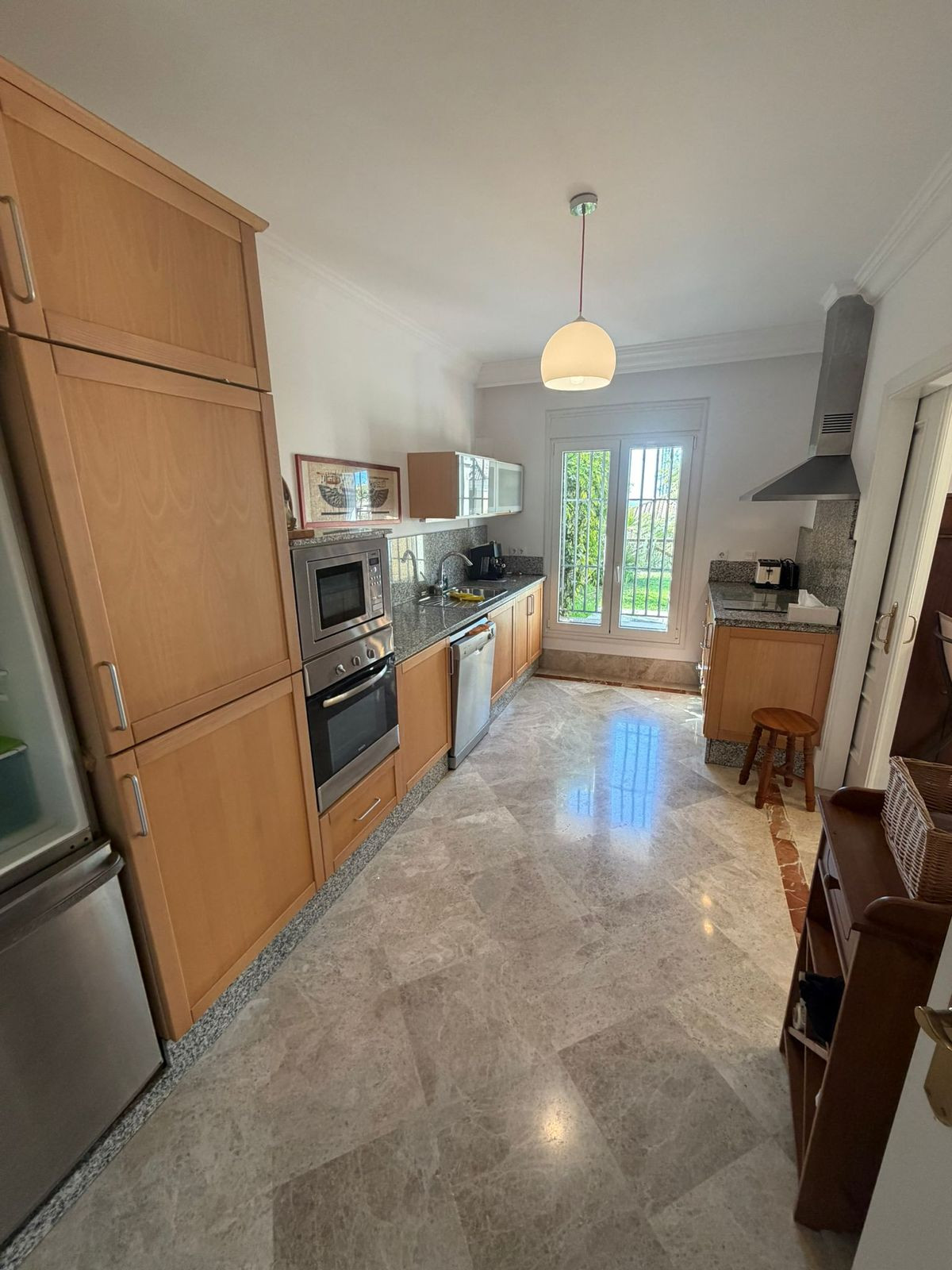 Residents benefit from well-maintained communal gardens and a communal swimming pool within a gated complex with 24-hour security. A solid choice as a golf-side residence or investment in one of Marbella East’s established residential areas.