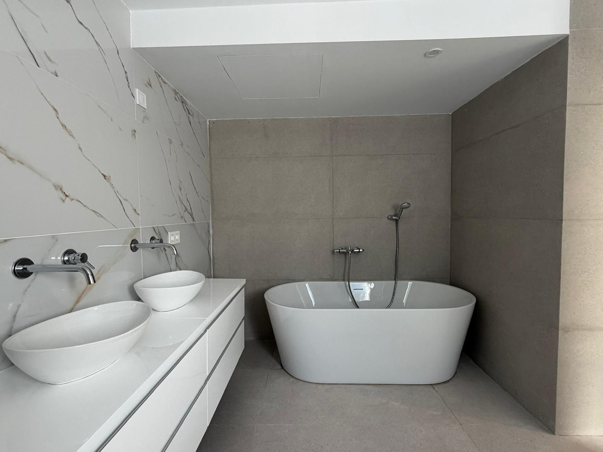 The property includes three spacious bedrooms, all en-suite, and a total of five bathrooms, ensuring comfort and privacy for all. Every room is equipped with independent air conditioning, providing year-round climate control.