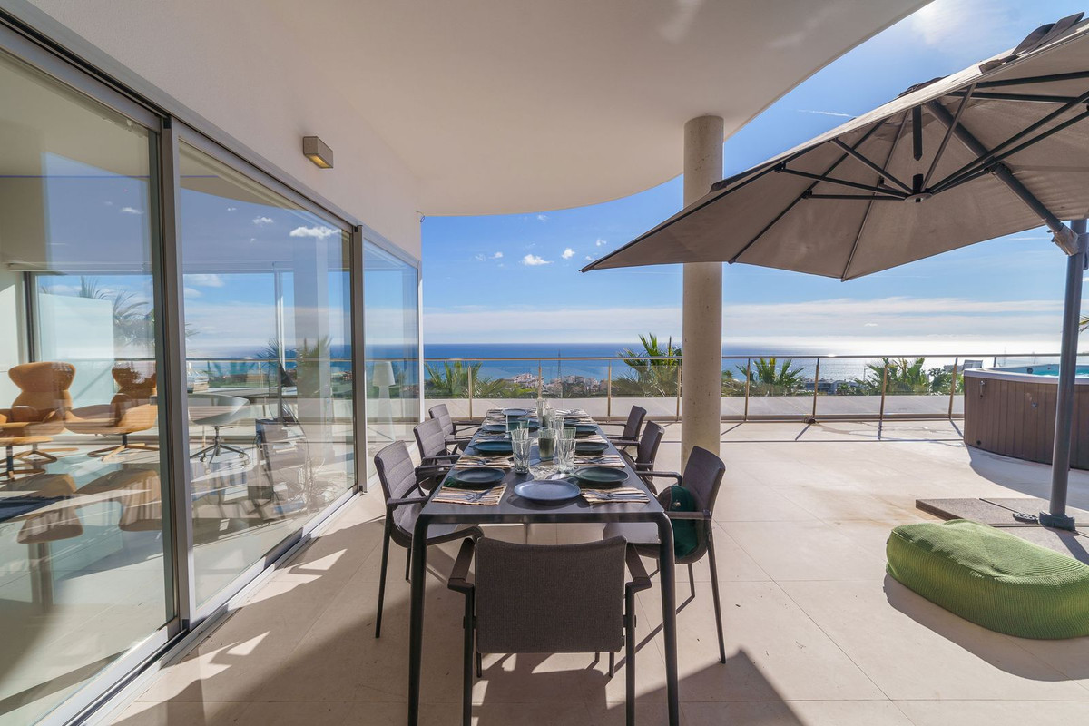 This spacious & luxurious penthouse (with 138 m2 inside) offers 3 bedrooms, with 3 ensuite full bathrooms, open plan kitchen, living and dining room and a large terrace, accessible from all the rooms. The 106 m2 terrace, which has a covered part and a large jacuzzi, becomes an integral part of the apartment when you leave the terrace doors open and you enjoy both sun and views all year round.