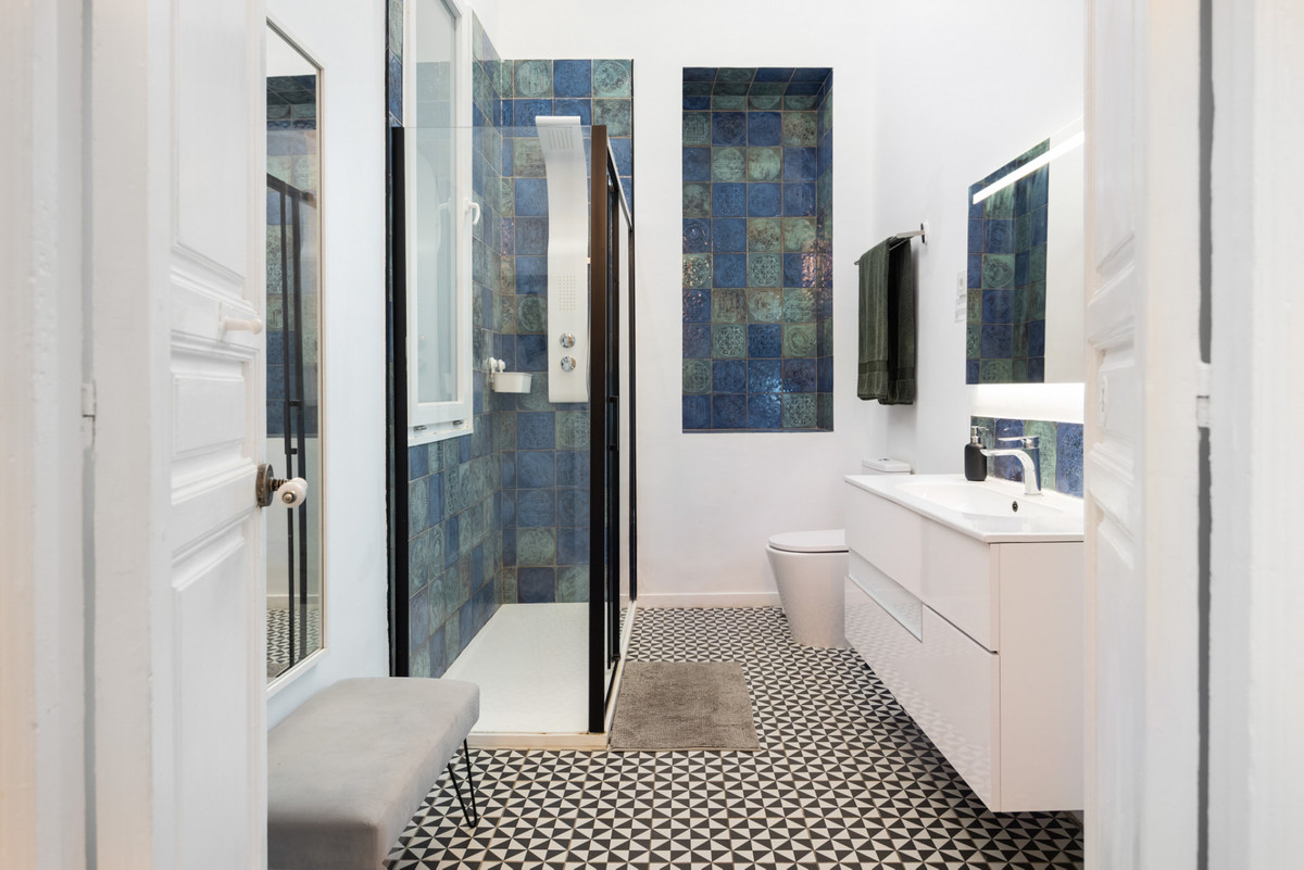 Impressive 4.2-meter-high ceilings with exposed beams, 3-meter doors, and original 19th-century tiles anchor a high-end renovation that honours the building’s heritage while enhancing everyday comfort. The spa-style bathrooms offer generous dimensions and rain-effect showers; central air conditioning serves the entire residence. The versatile layout allows for an independent studio or three-bedroom apartment. At the moment, it's functioning as an Airbnb, making this ideal for guests or additional income as a short-term rental.