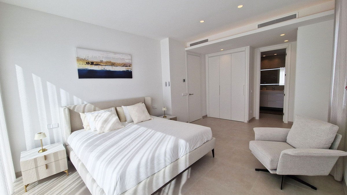 Fantastic key-ready La Cala Golf Villa for sale just a few minutes drive from La Cala golf course and beaches of Mijas Costa. The lovely village of La Cala is less than 10 minutes driving distance. This villa is built over 638 square meters. It has the original configuration of the villas, with one bedroom with ensuite bathroom on the main floor, one guest toilet and 3 bedrooms each with it's own bathroom in suite on the first floor. All bedrooms are equipped with electric blackout shutters. The villa is sold fully furnished. It includes as well a huge 200 m² basement that its new owners can customize as they wish aand transform easily in a 7 bedrooms home. Passing through the entrance with its beautiful, large wooden door, you enter a spacious living area comprising a lounge and dining room, which immediately creates a welcoming impression of space and light. This is complemented by a large, fully equipped open-plan kitchen. Solar panels installed on the roof.