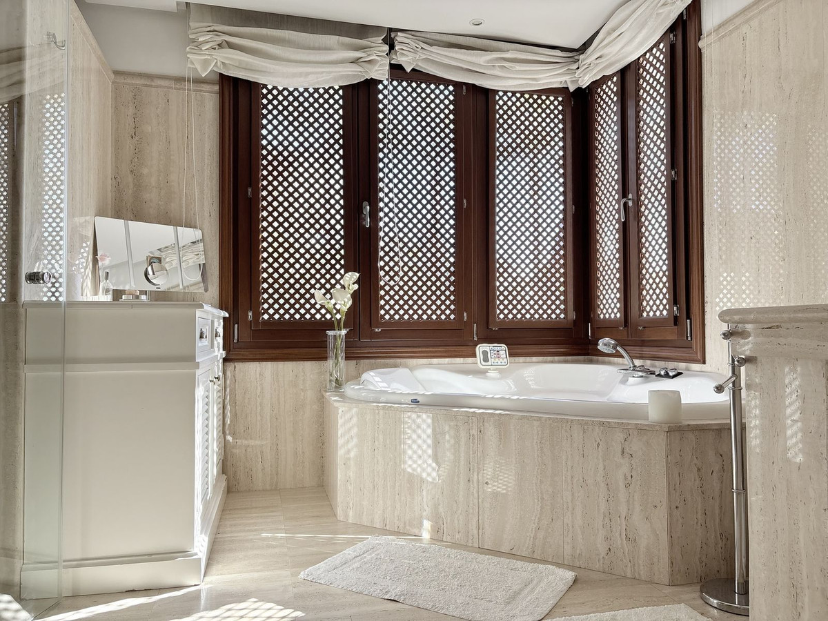 All three bedrooms are en-suite. The master suite is simply outstanding: spacious, with numerous built-in wardrobes, direct terrace access, and a spectacular bathroom featuring double sinks, a large walk-in shower, and a Jacuzzi bath.