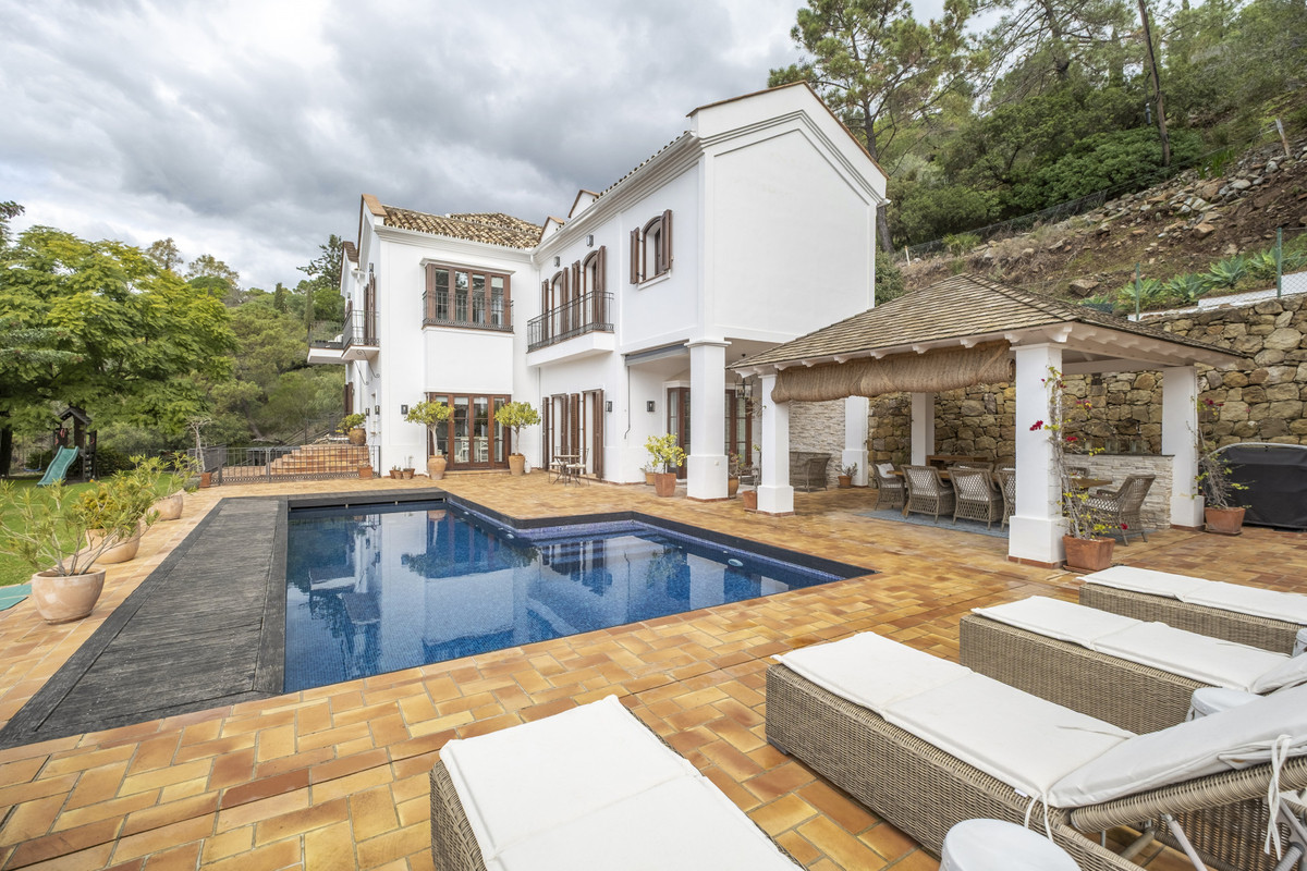 The villa combines traditional Spanish charm with modern comforts natural wood, marble, and stone finishes, underfloor heating, and Miele appliances. Outside, enjoy expansive terraces, a large garden, and a serene pool area with panoramic views.