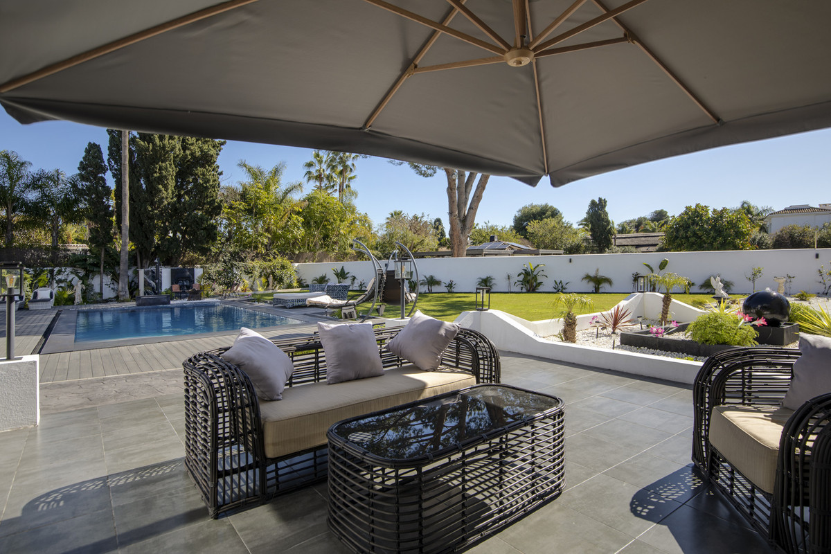 Located in the prestigious area of Guadalmina Baja – Casasola, just a short stroll from the beach, this stunning recently renovated villa sits on an exceptionally large private plot, offering space, privacy, and effortless coastal living.