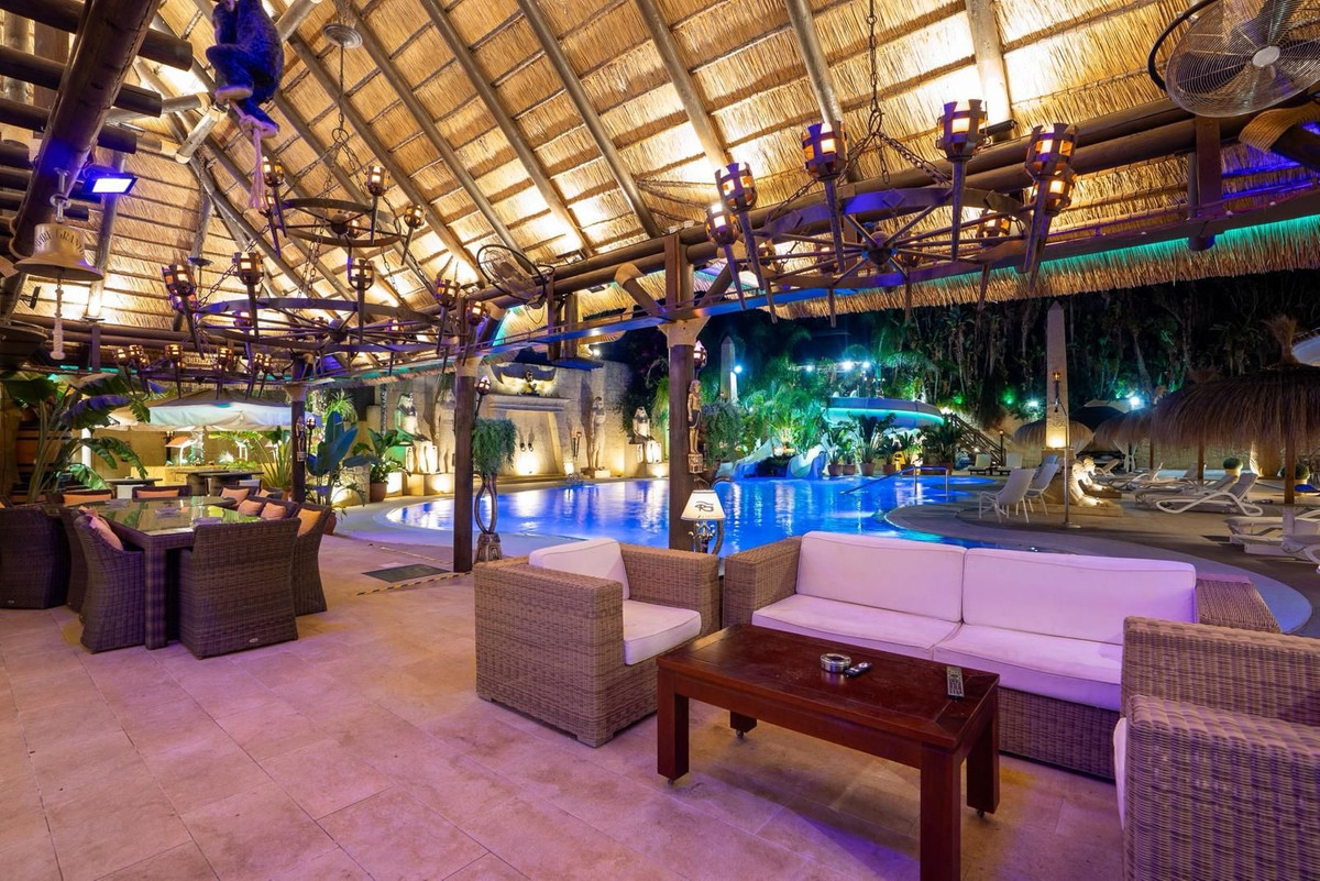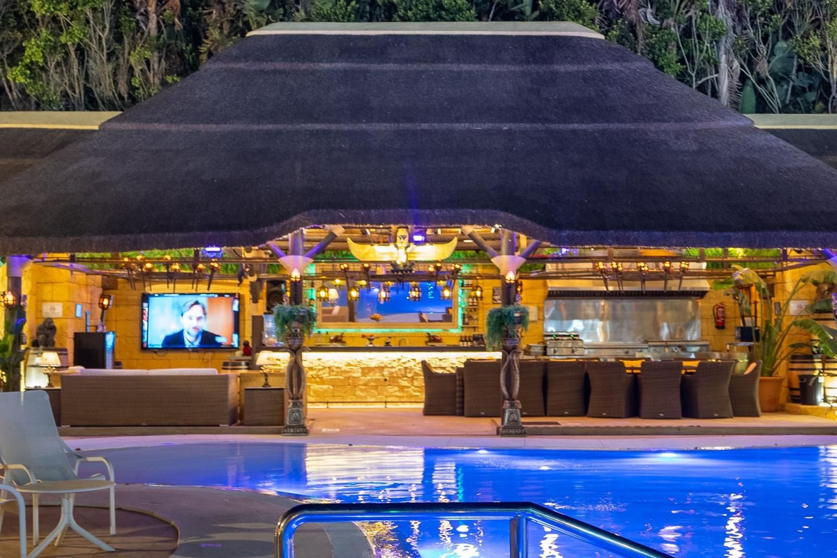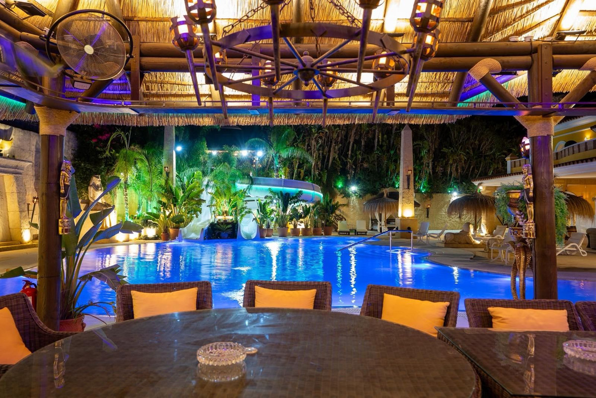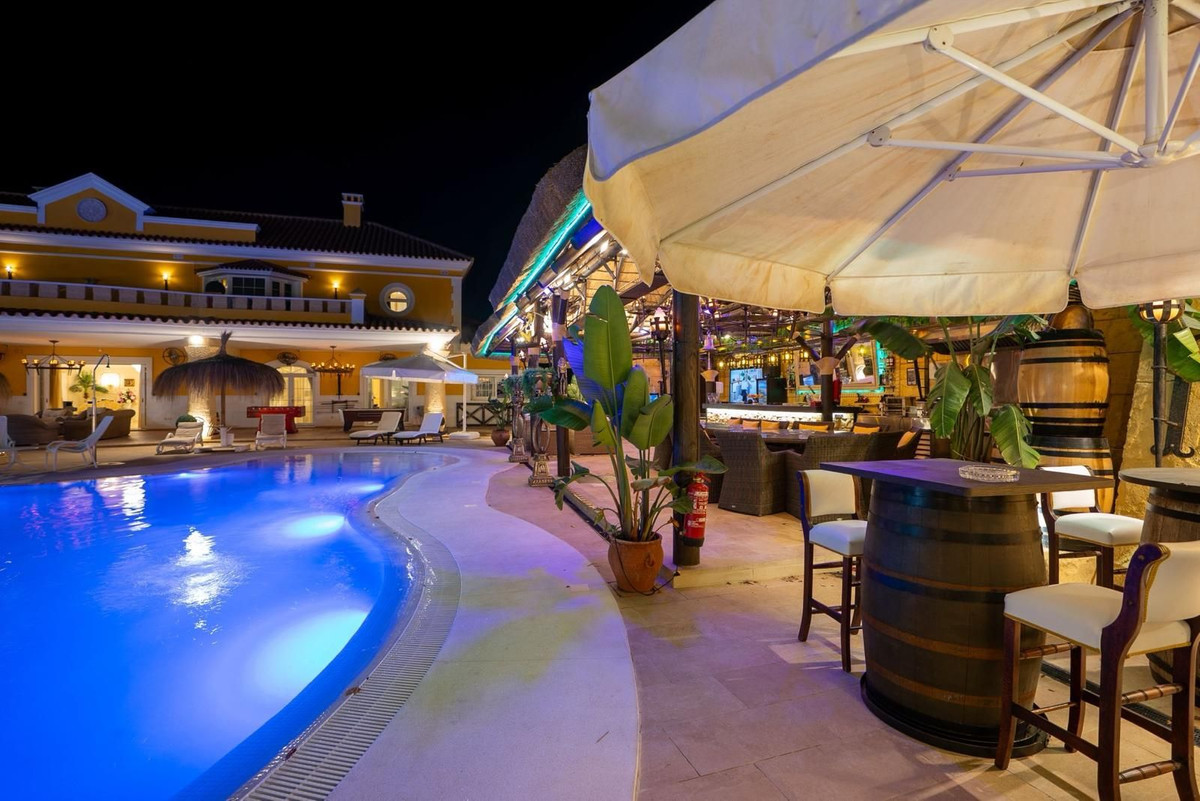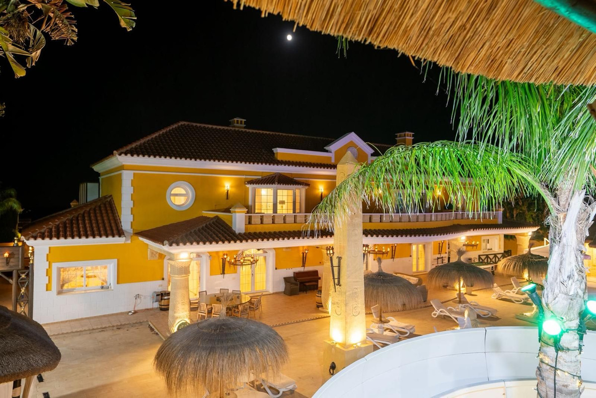 Located in Zone G of Sotogrande Alto, this large luxury villa was built by the current owner over a period of 10 years to a very high standard, using state-of-the-art materials and a wide selection of incredible crystal chandeliers. The large entrance hall features two curved marble staircases leading to the upper floor, where there are three bedrooms, one of which is the master suite, with Egyptian-themed décor, hand-painted walls, ornate moldings, and solid stone pillars. There is also a private living area overlooking the garden and pool. There is a dressing room and the main en-suite bathroom with a whirlpool tub and double walk-in shower. Two other spacious bedrooms, both en-suite, are located on this floor, connecting to the private terrace and from there, up the stairs to the private solarium. Inside the villa there is an elevator serving all 3 floors and on the ground floor there is the large living room, dining room, and doors to the covered terrace and pool area. There is also a service kitchen with pantry, utility room, and laundry/storage room. There is also a fully equipped cinema room with 8 leather seats. In the semi-basement is the entertainment suite, all decorated and hand-painted in an Egyptian theme, with matching decorations. There is a poker table, seating areas, a large cocktail bar, a modern gym with changing rooms and showers, and two further bedrooms with en-suite bathrooms, also in Egyptian style. In the center of the living room is a miniature theater modeled after London's West End theater, with two boxes and 37 seats. Luxuriously decorated in theatrical style, it comes with the complete set and props for a production of the musical Phantom of the Opera and offers a complete sound and lighting system, as well as the potential to show movies with the cinema system and stage for small private concerts. Work on the villa and grounds has not been completed, but this is a unique and personalized property, well worth viewing for the buyer looking for that special style home.