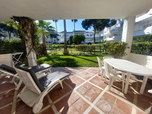 An opportunity has arisen to purchase this garden apartment, on this prestigious beachside urbanisation, which the owners bought from new! Minutes walking to the beach and minutes driving to Puerto Banus