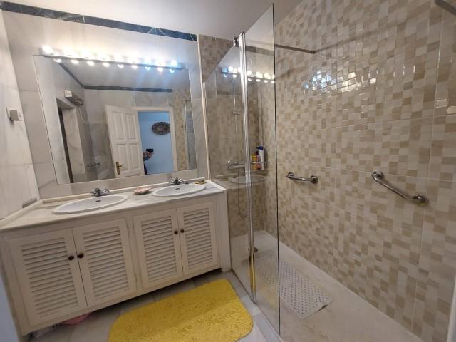 A square entrance hallway leads to a spacious lounge with fireplace, triple aspect, with two large windows and double doors opening on to a sunny terrace, This leads directly out to a private fenced garden. 2 large double bedrooms with fitted wardrobes. 2 bathrooms, 1 x ensuite. Large kitchen with hatch. The private garden has been completely fenced, and has it's own gate leading to the lush gardens, and one of the 3 community swimming pools, One of which is heated so open for use for all year round for the keen swimmers. >It is possible that there maybe an opportunity to make a 3rd bedroom. This urbanisation allows tourist licences.