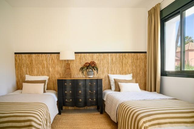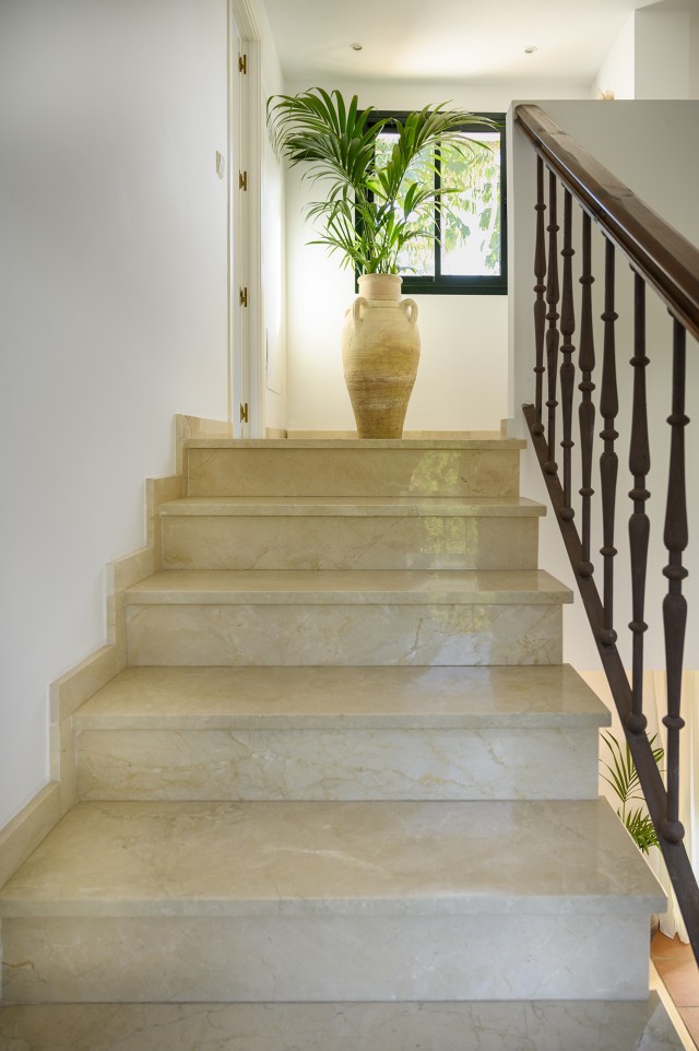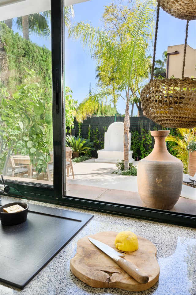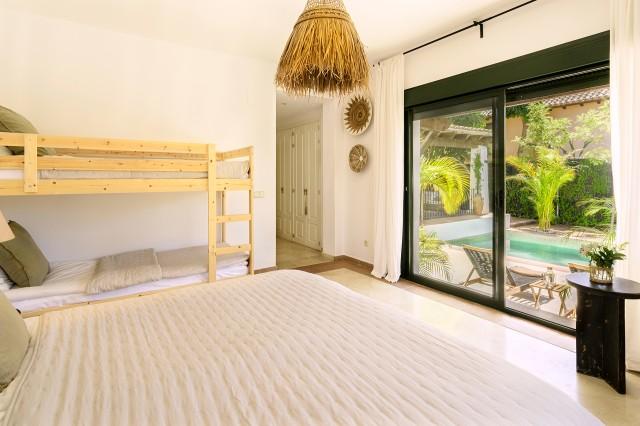 Welcome to a private sanctuary where lush Mediterranean greenery meets refined modern living - a villa created for those who value tranquility, natural light, and effortless indoor-outdoor flow. This beautifully renovated home offers 4 bedrooms and 3 bathrooms, designed around a calm and cultivated atmosphere that is felt throughout the property, especially in the outdoor spaces. The newly renovated kitchen combines warm materials with clean, contemporary finishes and is complemented by a practical pantry room, creating a stylish and functional space for everyday living. Outside, a true oasis unfolds. Small pathways wind through abundant greenery, mature trees, and thoughtfully landscaped gardens, creating a peaceful and private setting. The private pool is surrounded by elegant wood decking, enhancing the relaxed resort feeling while maintaining a modern aesthetic. With the sun rising in the east, morning light fills the kitchen and living room, perfect for enjoying a quiet moment on the terrace. As the day progresses, the sun moves westward, continuing to illuminate the living area before settling beautifully over the pool area in the afternoon and evening. The basement features a versatile multiroom ideal for movie nights, games, table tennis, or table football, along with a laundry room, storage room, and private garage. All bedrooms have direct access to a balcony or terrace, strengthening the seamless connection to the outdoors. Located next to El Campanario Club Resort, you have access to fitness, golf, and excellent dining, with enhanced padel and tennis facilities further enhancing the area. Nearby, International Kids Club El Campanario offers a popular international childcare option. Here, you experience true calm and zen without compromising on location