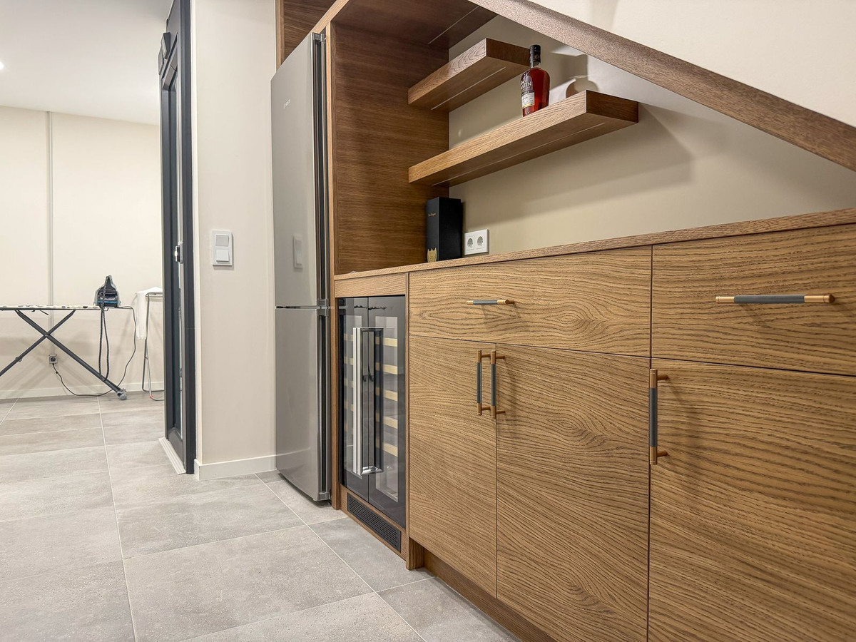 The property has been upgraded with several premium options from the developer, including high-quality tiling and integrated appliances. In addition, the original kitchen has been replaced with a high-end contemporary kitchen that enhances both functionality and design. A bespoke wine bar has also been integrated, creating an elegant feature ideal for entertaining and relaxed evenings at home.